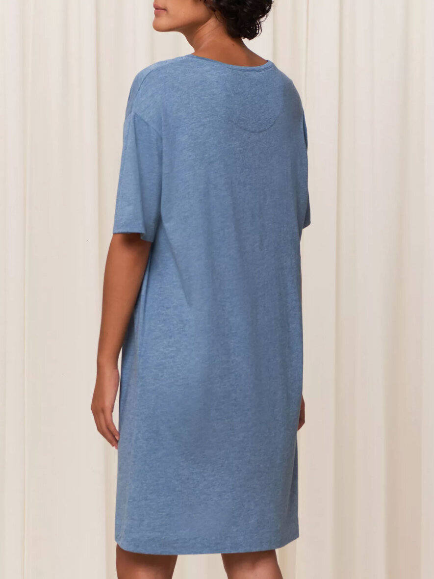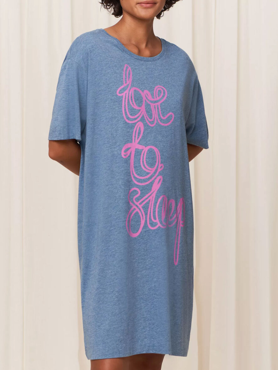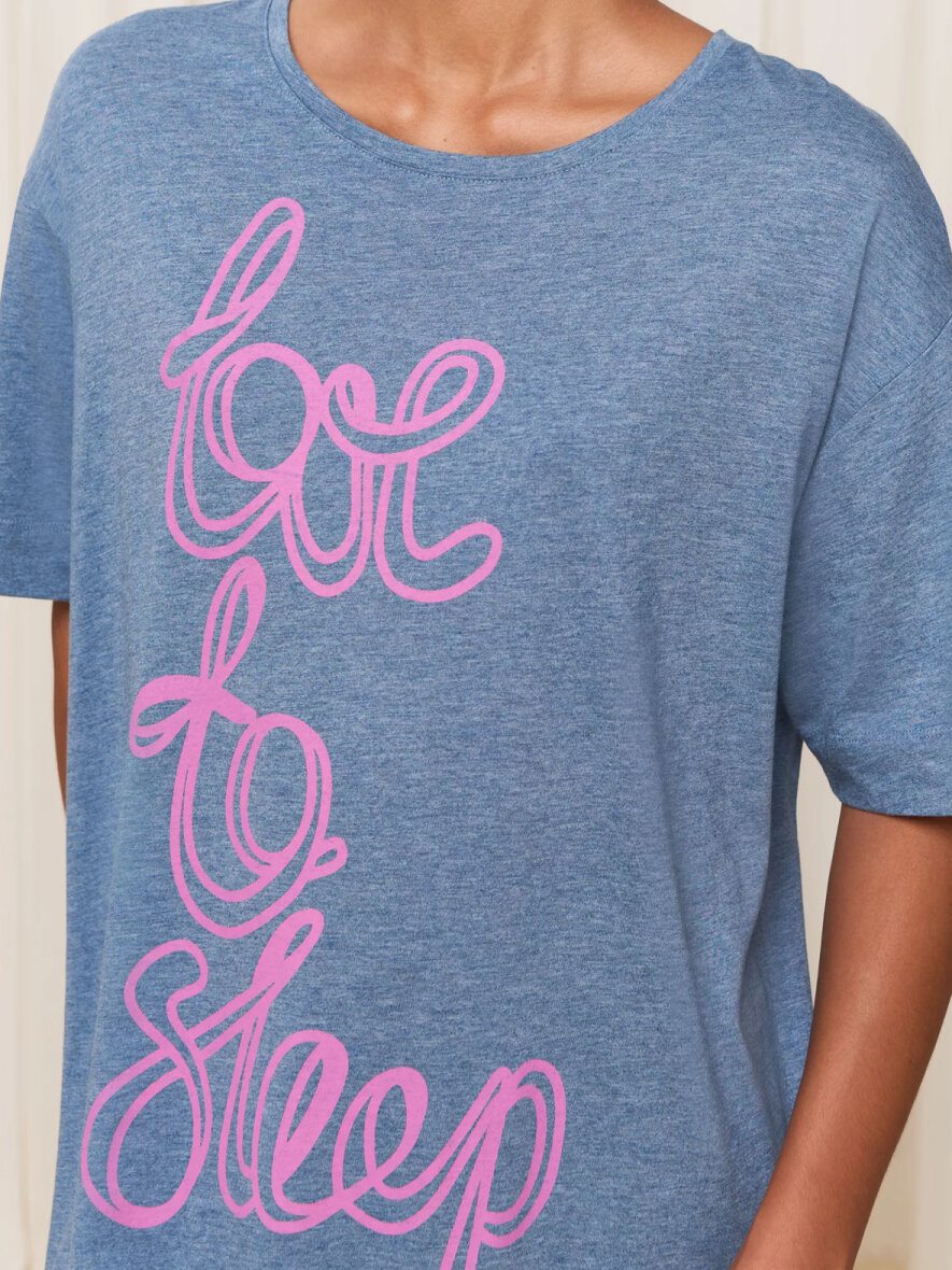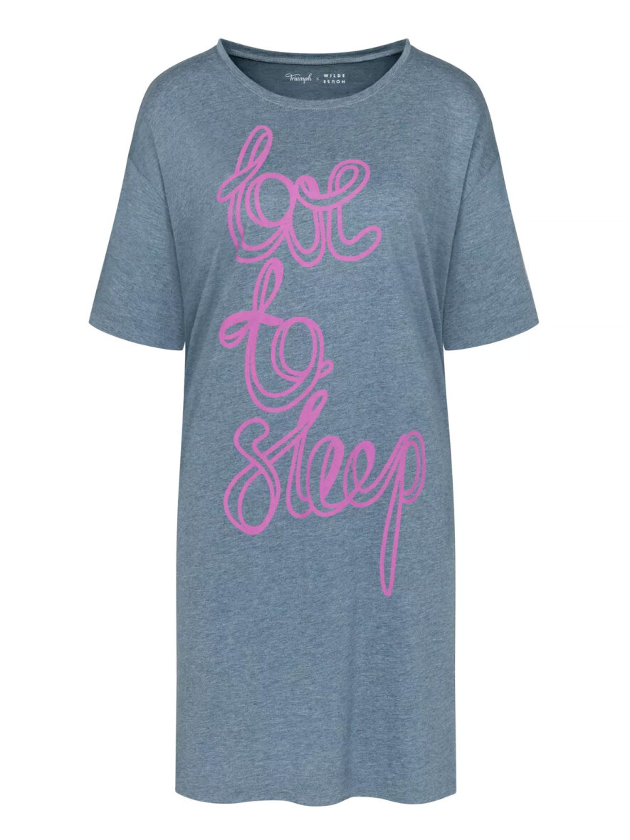 Natkjole med print foran "Love to sleep" fra Triumph i et blødt bomulds materiale. Rund hals og korte ærmer. Pasformen er løs og rummelig.