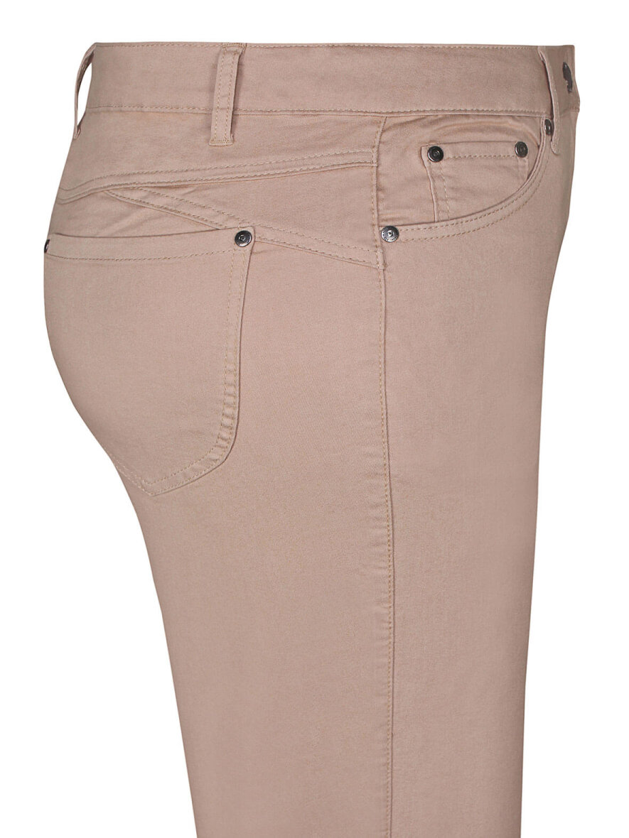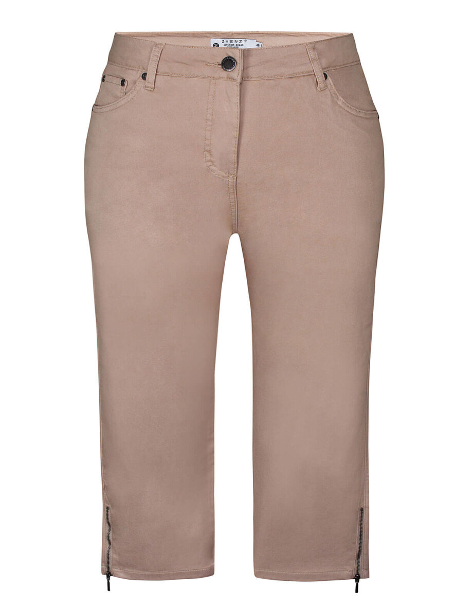 Lækre piratbukser fra Zhenzi i 3/4 længde. Smalle ben. Lukkes med knap og lynlås. 5-lommer og bæltestropper. Lynlås nederst på buksebenene.