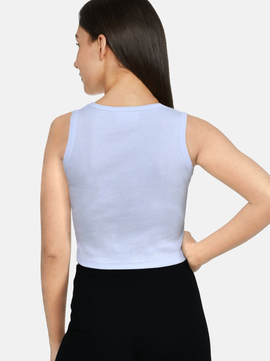 Blød og behagelig crop top fra Sisters Point. Tætsiddende rib crop top med rund hals. Max 5% krymp.
