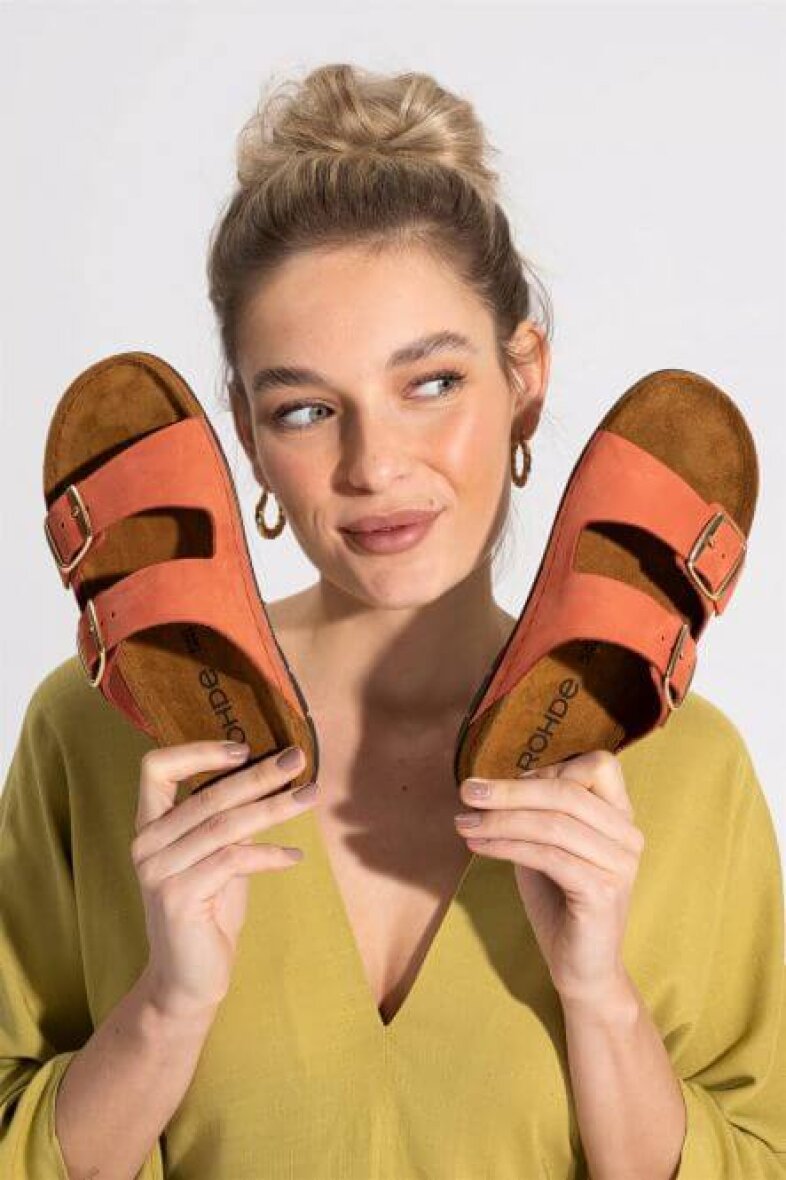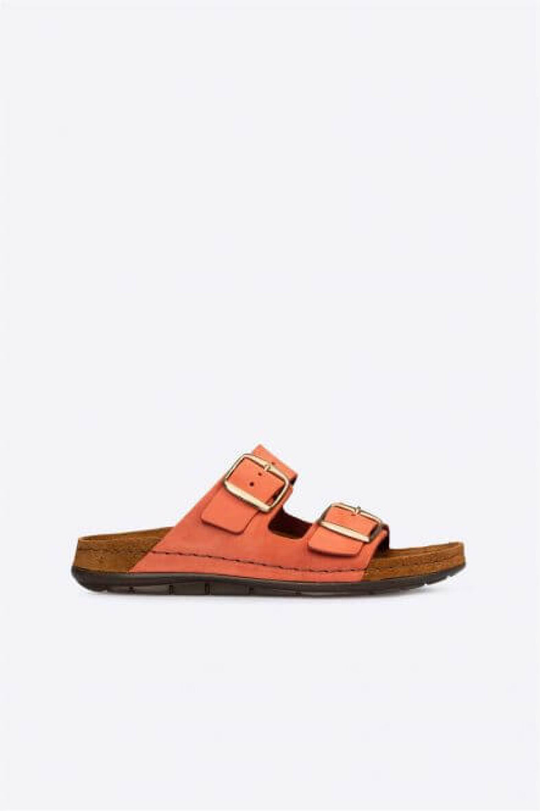 Klassisk sandal fra Rohde i rød farve. Overdelen er lavet i skind med nogle fine stikninger i siden. Sandalen kan reguleres med to spænderemme. Indlægssålen er en blød skind sål, som dine fødder vil komme til at elske. Modellen er let og fleksibel.