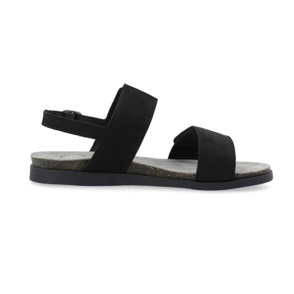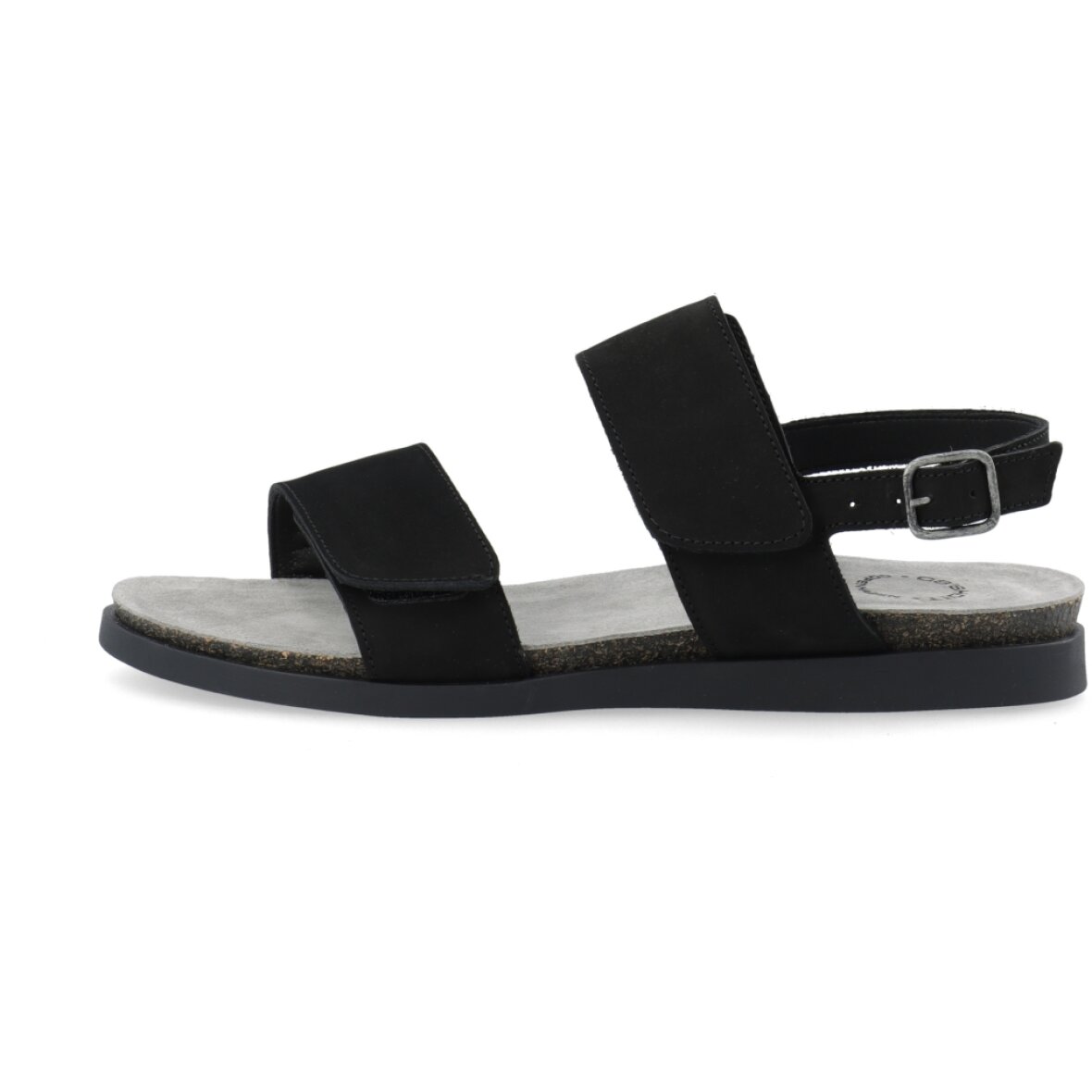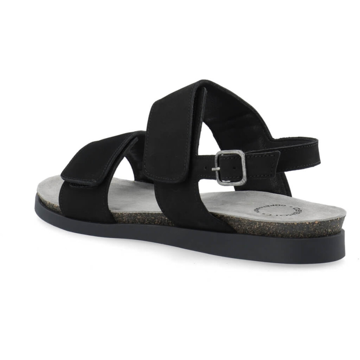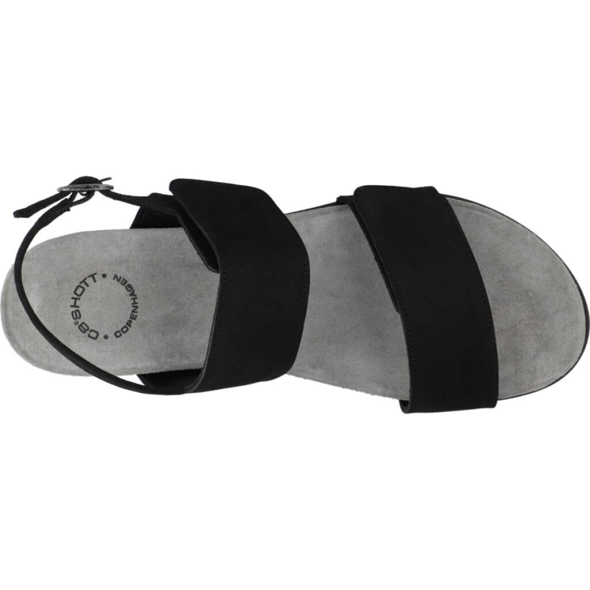 Flot og klassisk sort sandal fra Cashott. Modellen er lavet i sort nubuck med matchende sorte bunde, hvilket giver et flot og enkelt design. Sandalen er med to brede velcro remme over forfoden og vristen, så sandalen nemt kan tilpasses til din fod. Sandalen lukkes med en ankel spænderem.