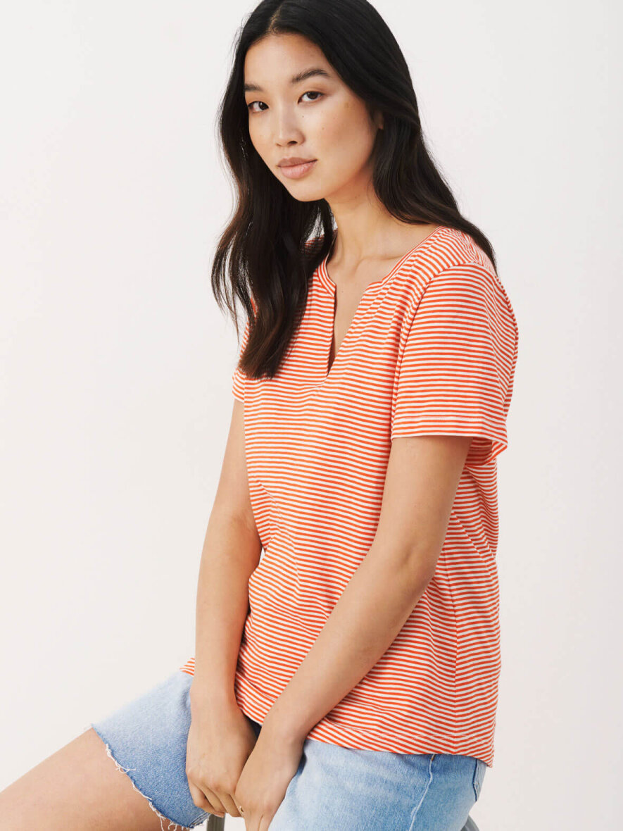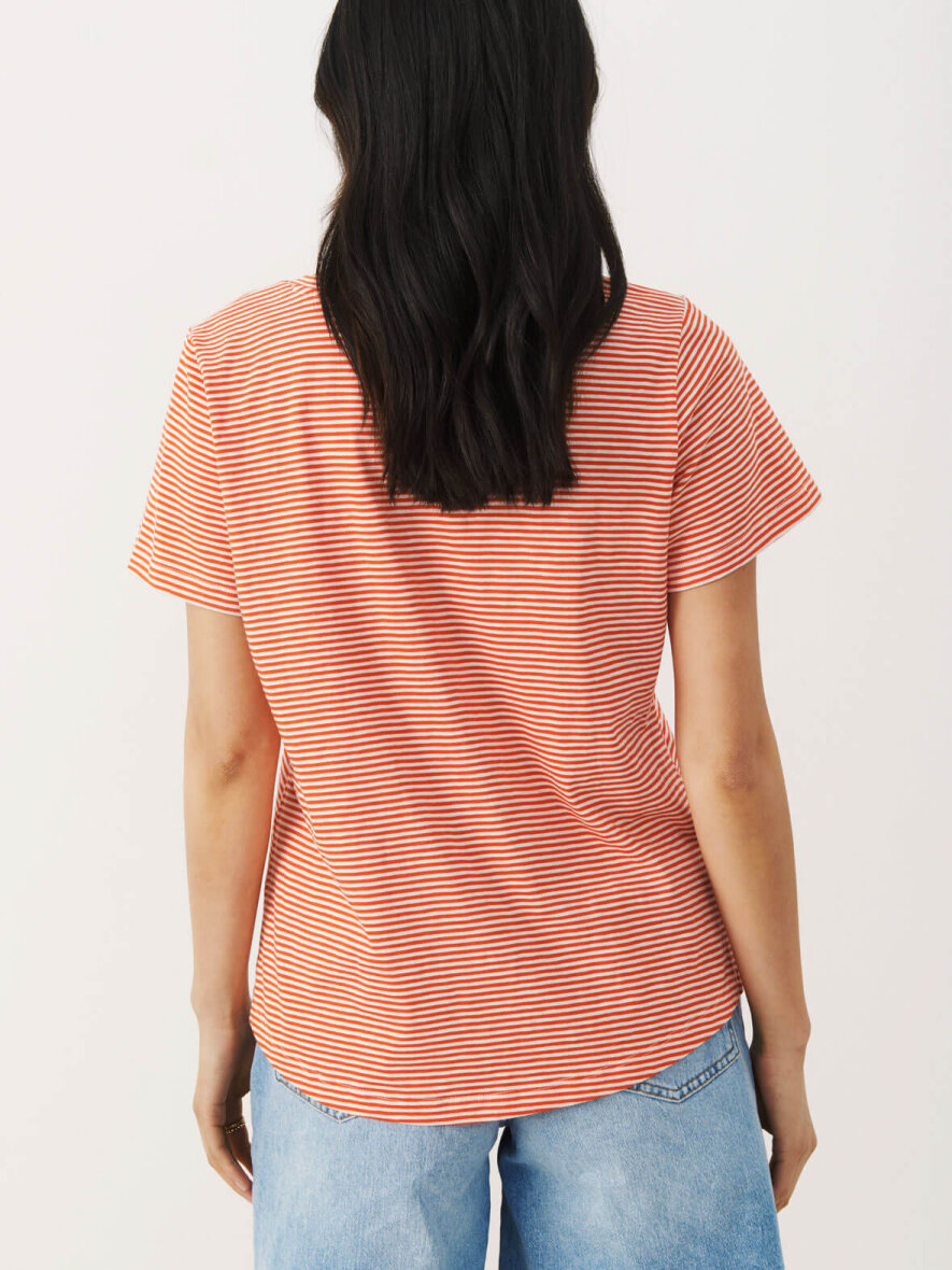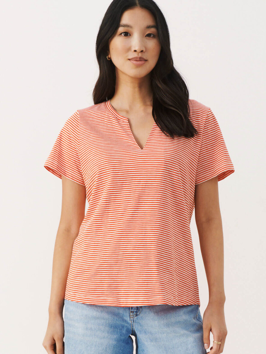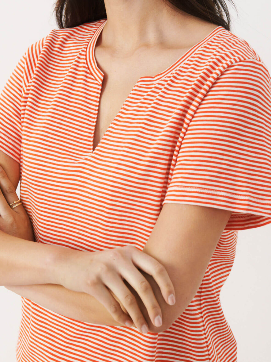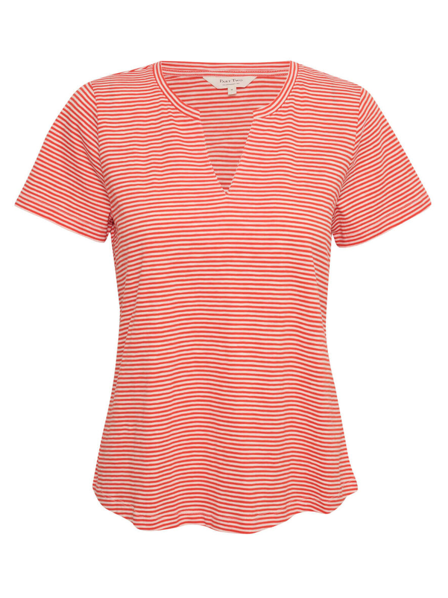 Sød basis T-shirt fra Part Two med korte ærmer. Rund hals med V-udskæring. Striber i hvid og rød. Dejlig kvalitet og behagelig pasform. Max 5% krymp.