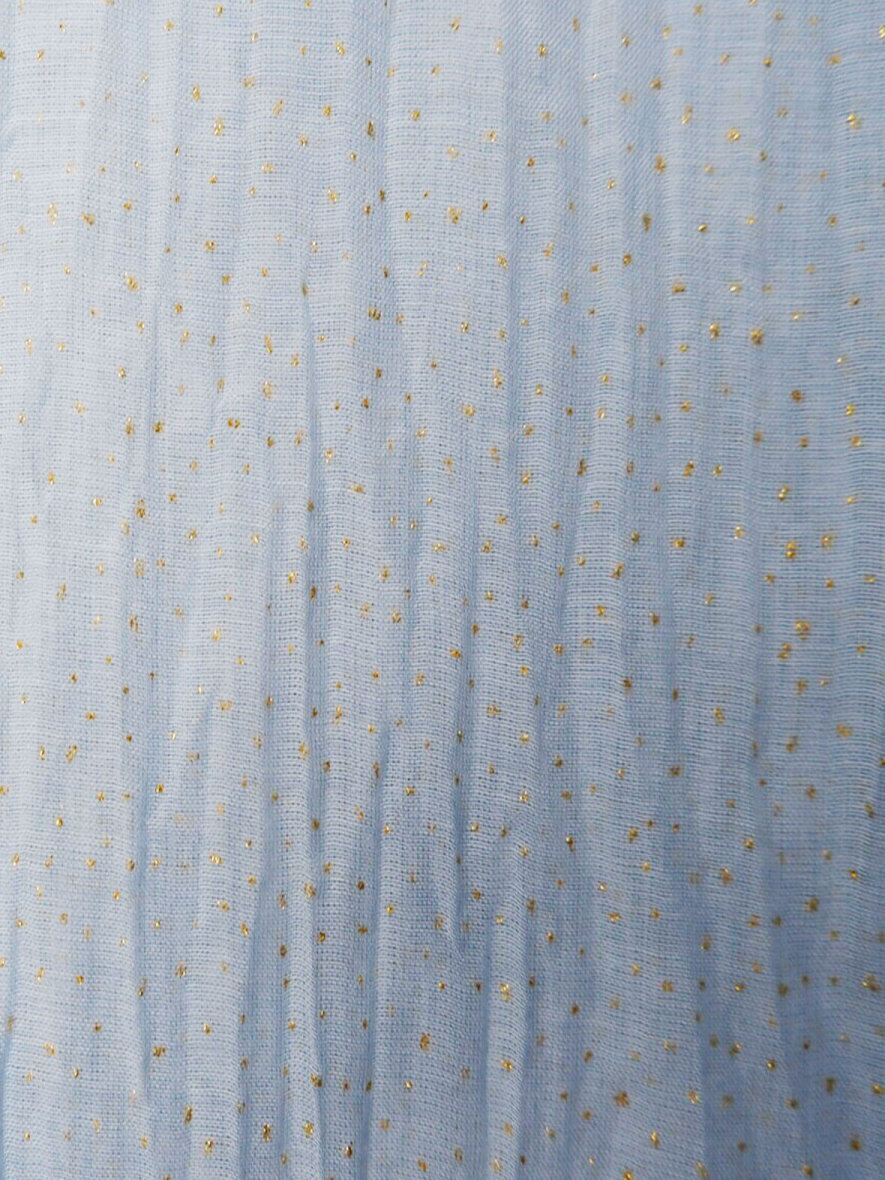 Lækkert tørklæde fra Black Colour i lyseblå med små prikker. Guldkant hele vejen rundt. 60 x 190 cm.