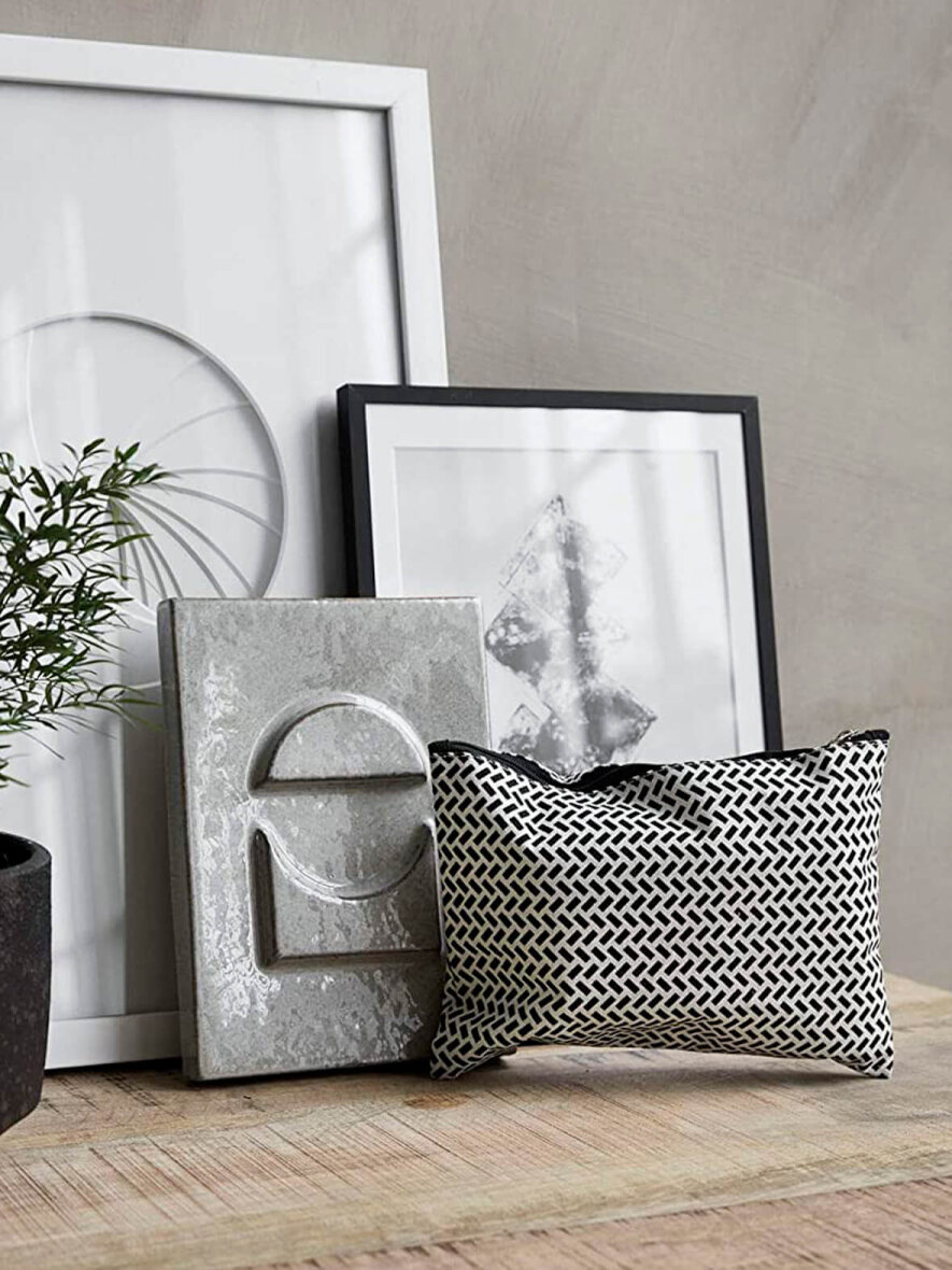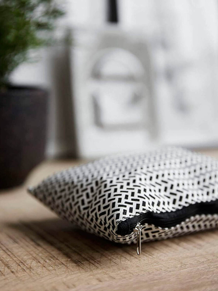 Smart og fin makeup pung. Praktisk og perfekt til kufferten. Lækker makeup pung fra House Doctor i et skønt grafisk design. Perfekt til at rumme den makeup, som du gerne vil have med på farten og så slipper du også for at det ligger i bunden af din håndtaske og roder. Brug den alternativt som opbevaring på badeværelset, hvor den uden tvivl vil have en dekorativ effekt. Tåler kun pletrens.