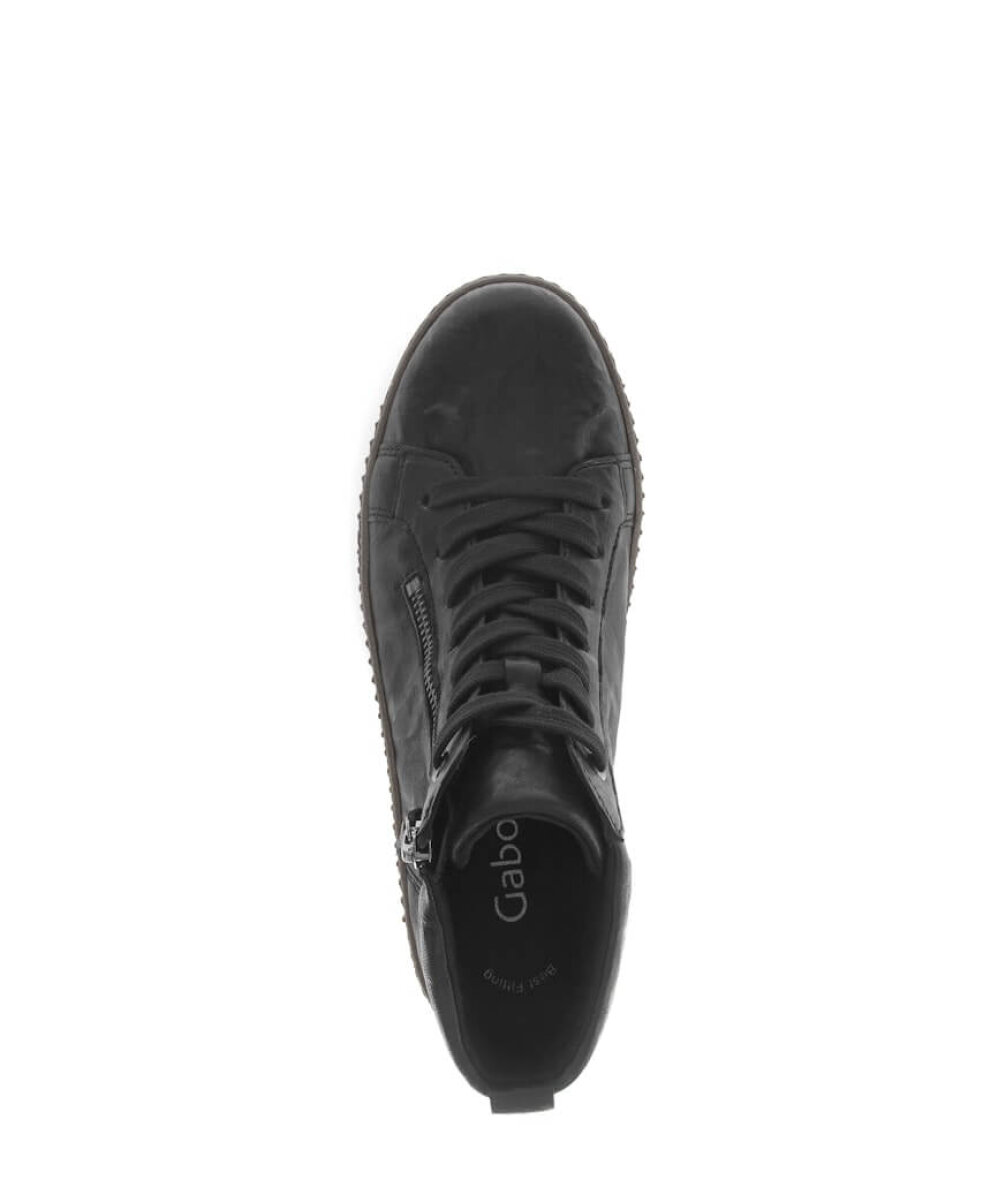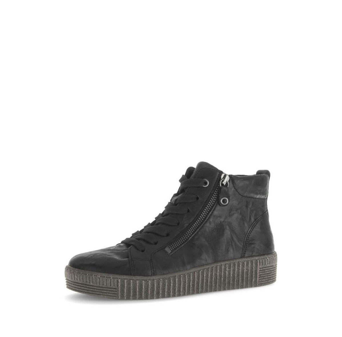 Gabor ankelstøvle i et moderne sneaker-inspireret look. Støvlen har både snørebånd og lynlås, hvilket gør den nem at tage af og på.
