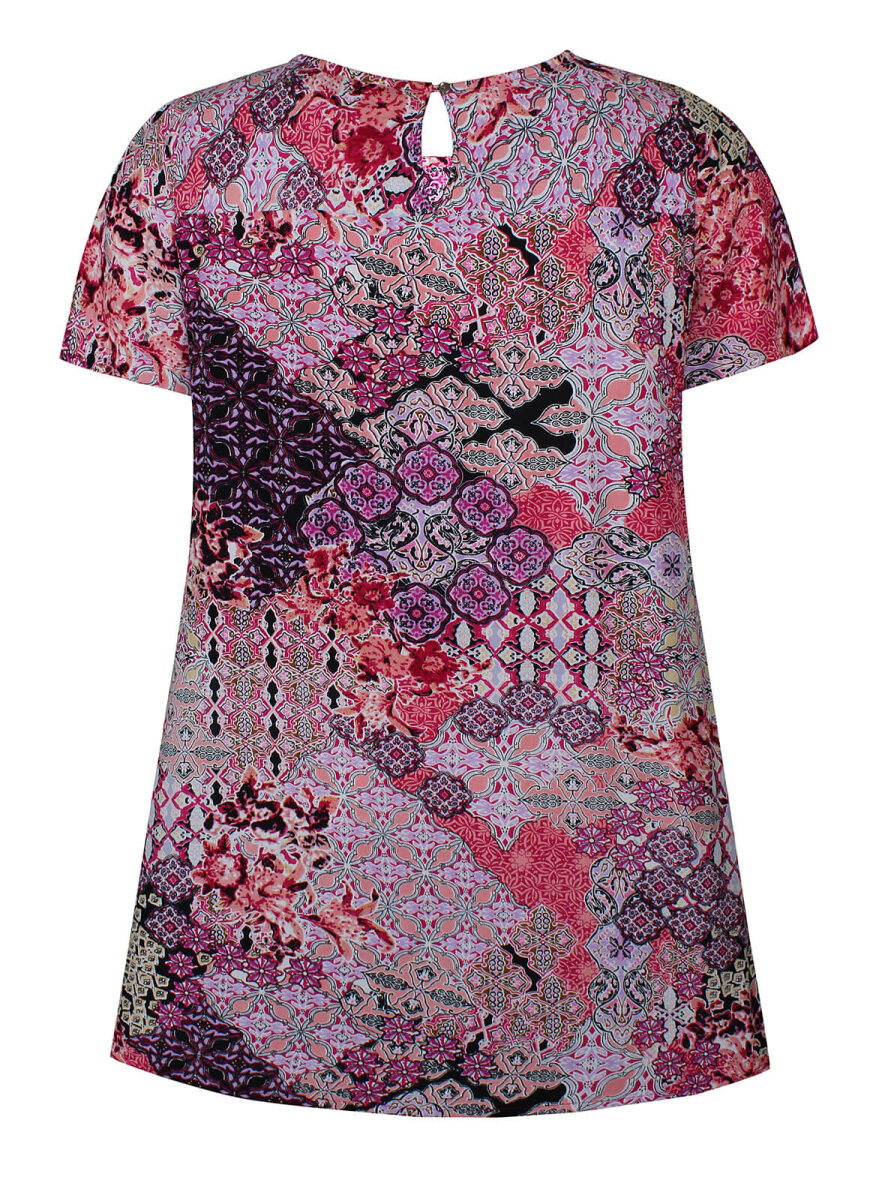 Super sød tunika fra Zhenzi med A-facon. Rund halsudskæring med nøglehul åbning i nakken. Korte ærmer. Flot grafisk print.