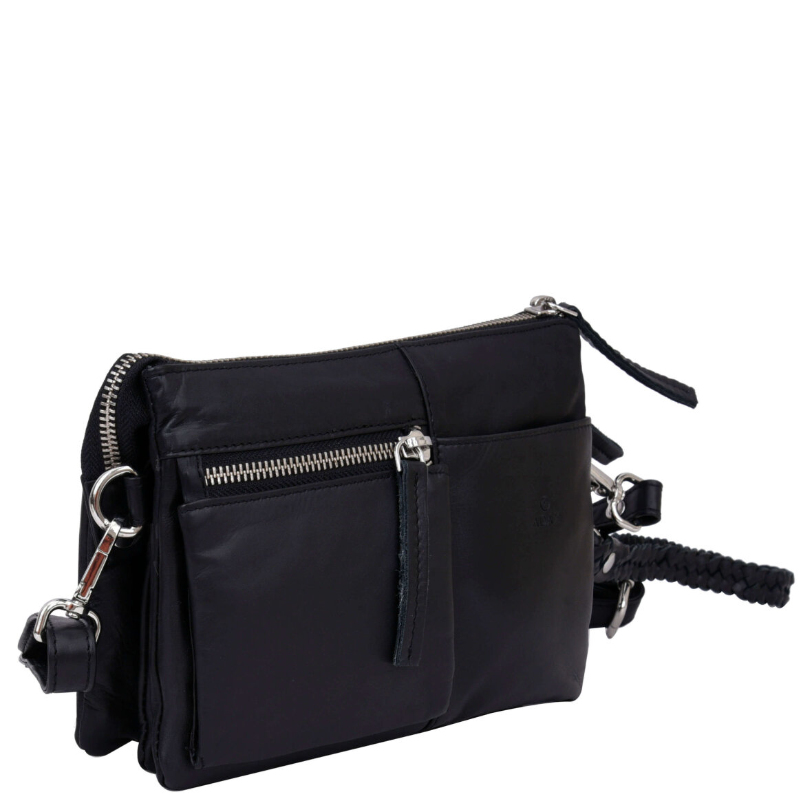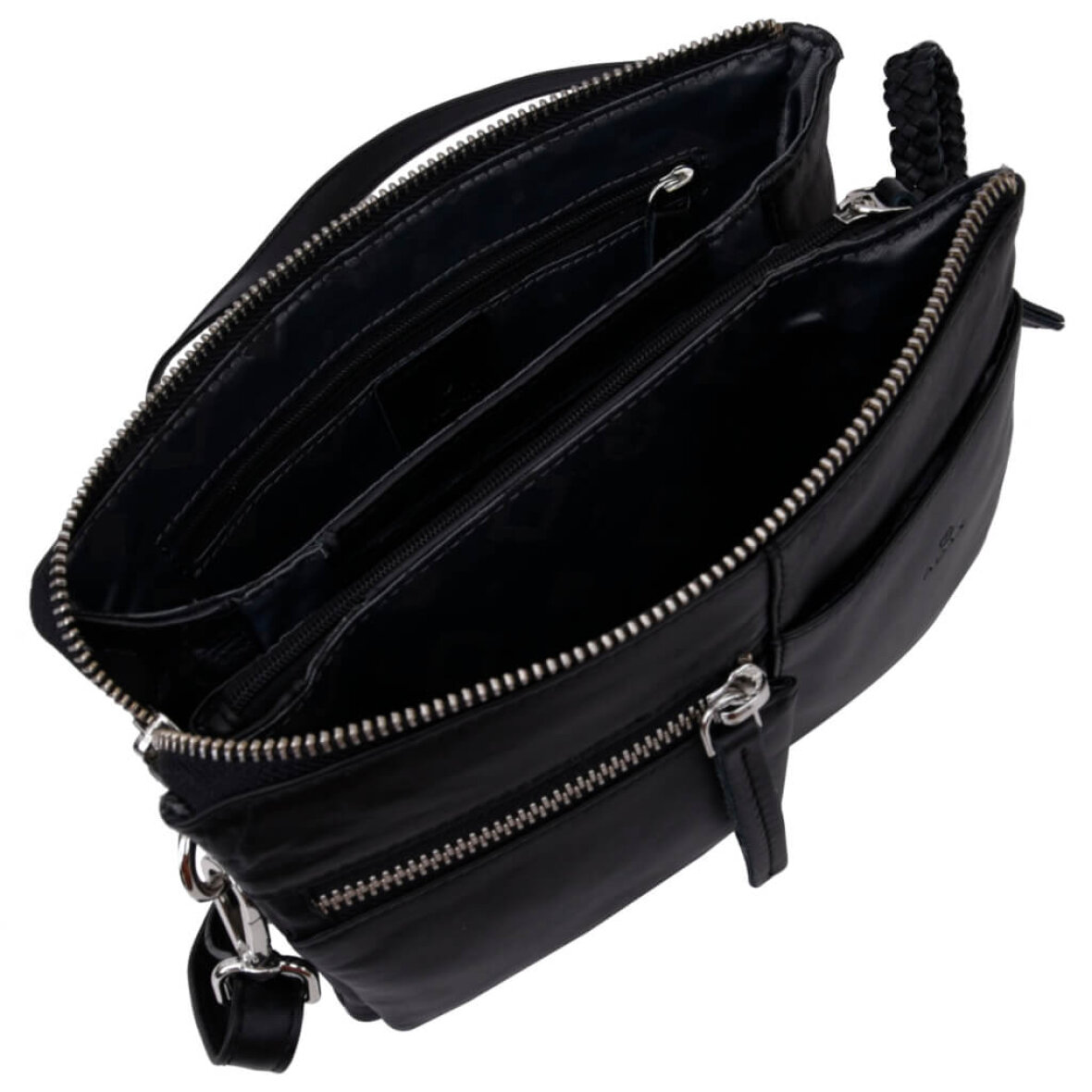 Tasken lynlås åbner til tre rum, hvor den ene er med lynlås luk. Udenpå har tasken en åben lomme samt en lynlås lomme.