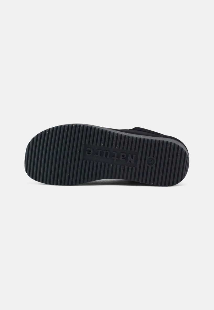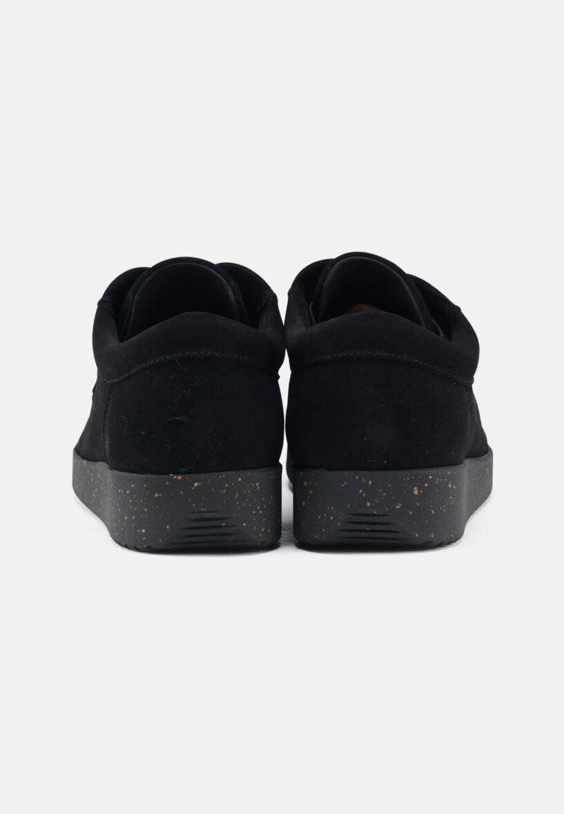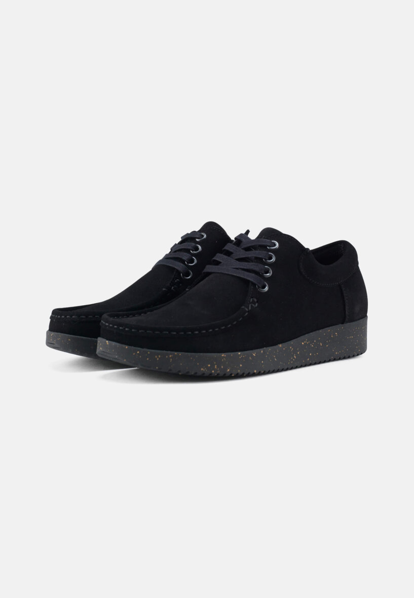 Den velkendte Anna model i en klassisk sort farve med matchende mørke bunde med korkrester i. Skoen er lavet i ruskind med vandafvisende effekt, hvilket er perfekt til det skiftende danske vejr.