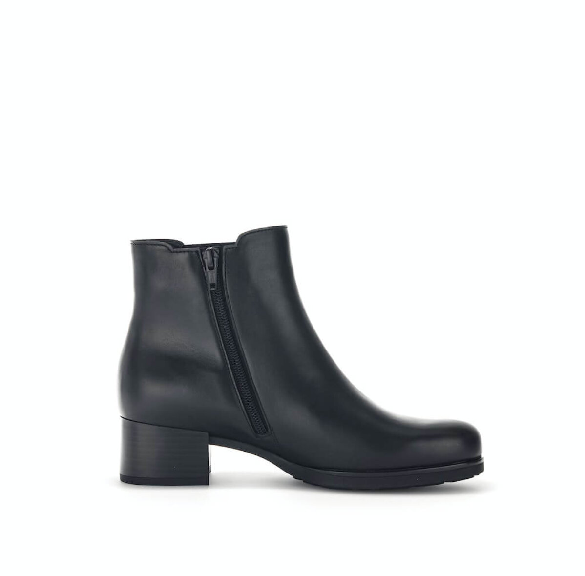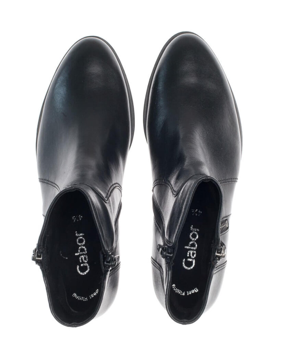Støvlen er lavet i sort kvalitetsskind med elastikpanel på ydersiden og lynlås på indersiden, så den er nem at få af og på. Støvlen er udstyret med en enkelt ydersål, som sikrer stabilitet og en god gangoplevelse. Støvlen er med en rund snude.