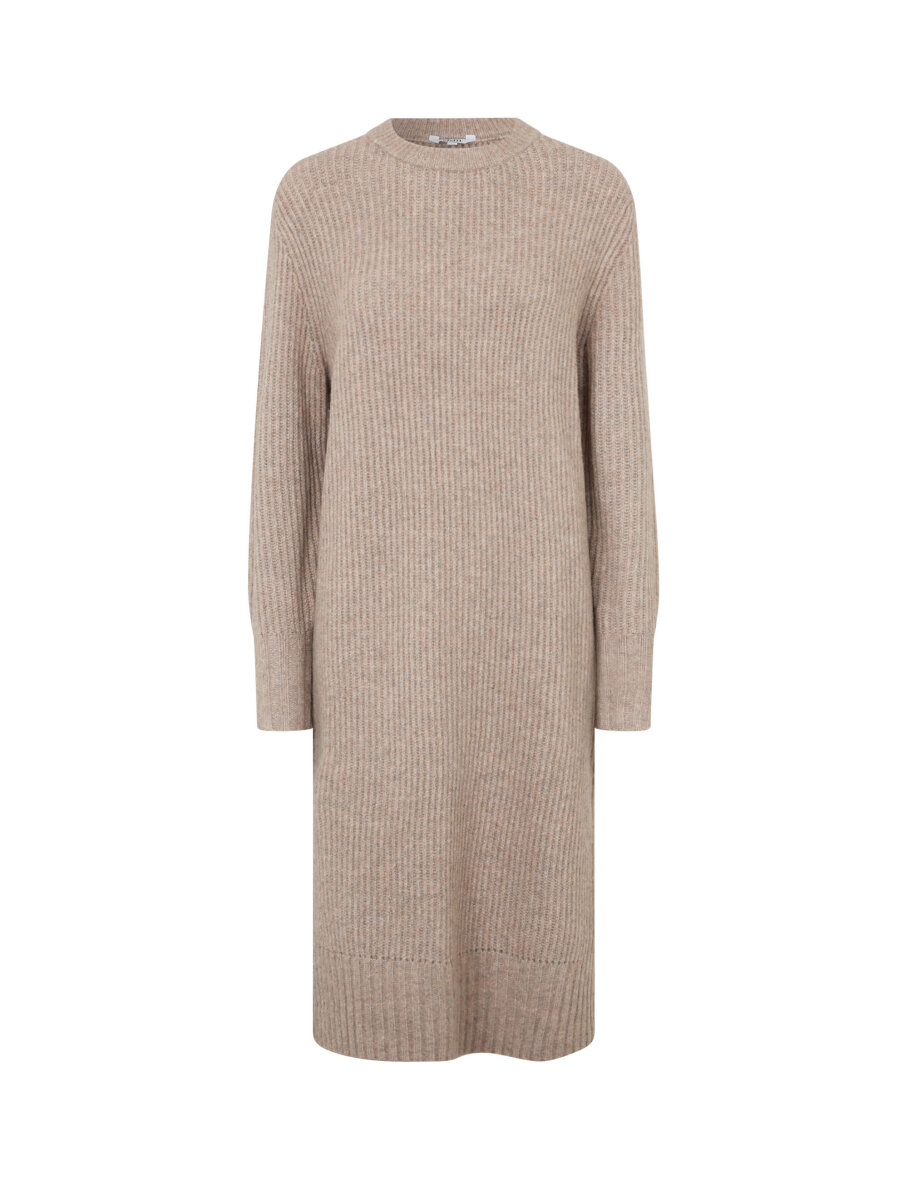 Flot mellemlang strikkjole fra MbyM. Sondra-M kjolen er lavet i et skønt mix af materialer, hvilket giver et dejlig blød kvalitet og er yderst behagelig at have på. Kjolen er med rund hals med ribkant. Kjolen er med lange ærmer og højt slids i siderne.