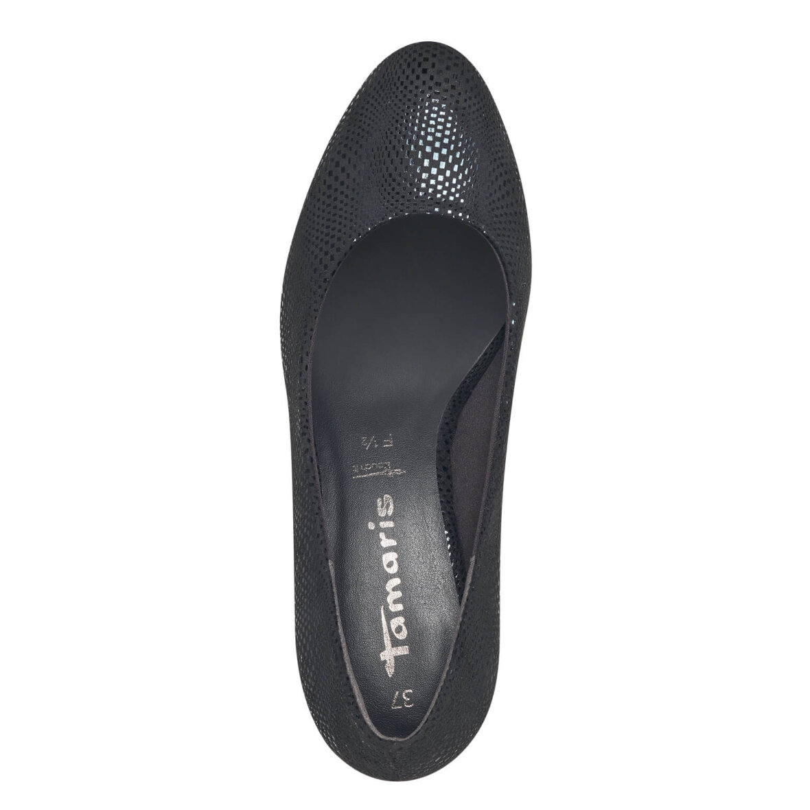 Skønne høje sko fra Tamaris. Skoen er lavet i en klassisk sort farve med let shine overdel. Denne klassiske model fra Tamaris har en god pasform, med rund snude og en hælhøjde på 6 cm.
