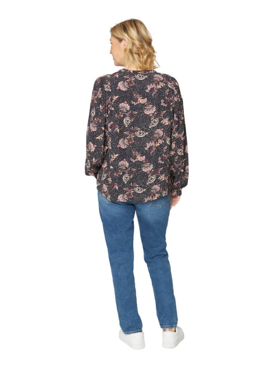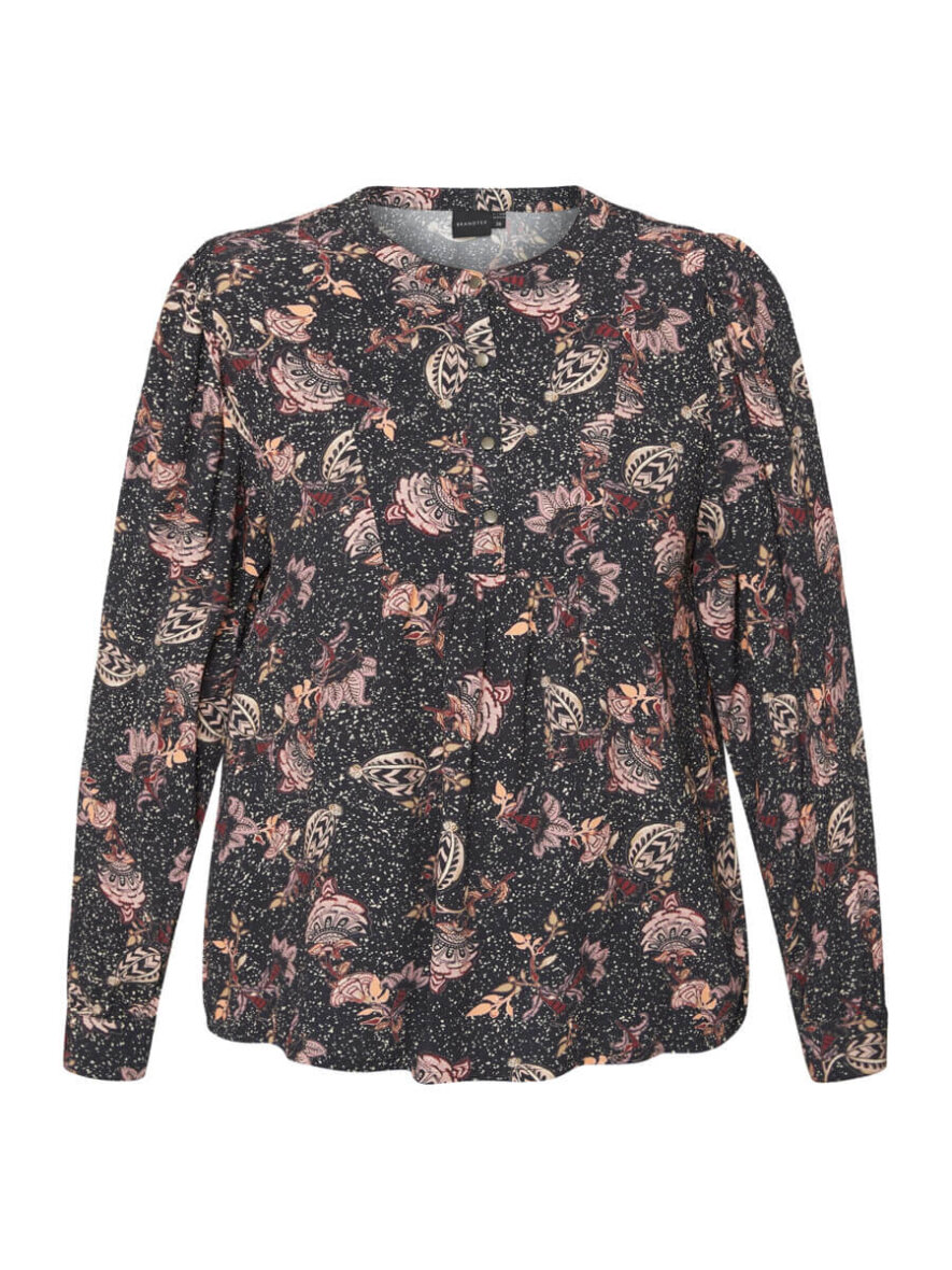 Flot og feminin bluse fra fra Brandtex. Blusen er lavet i et skønt blomstret print og prikker.