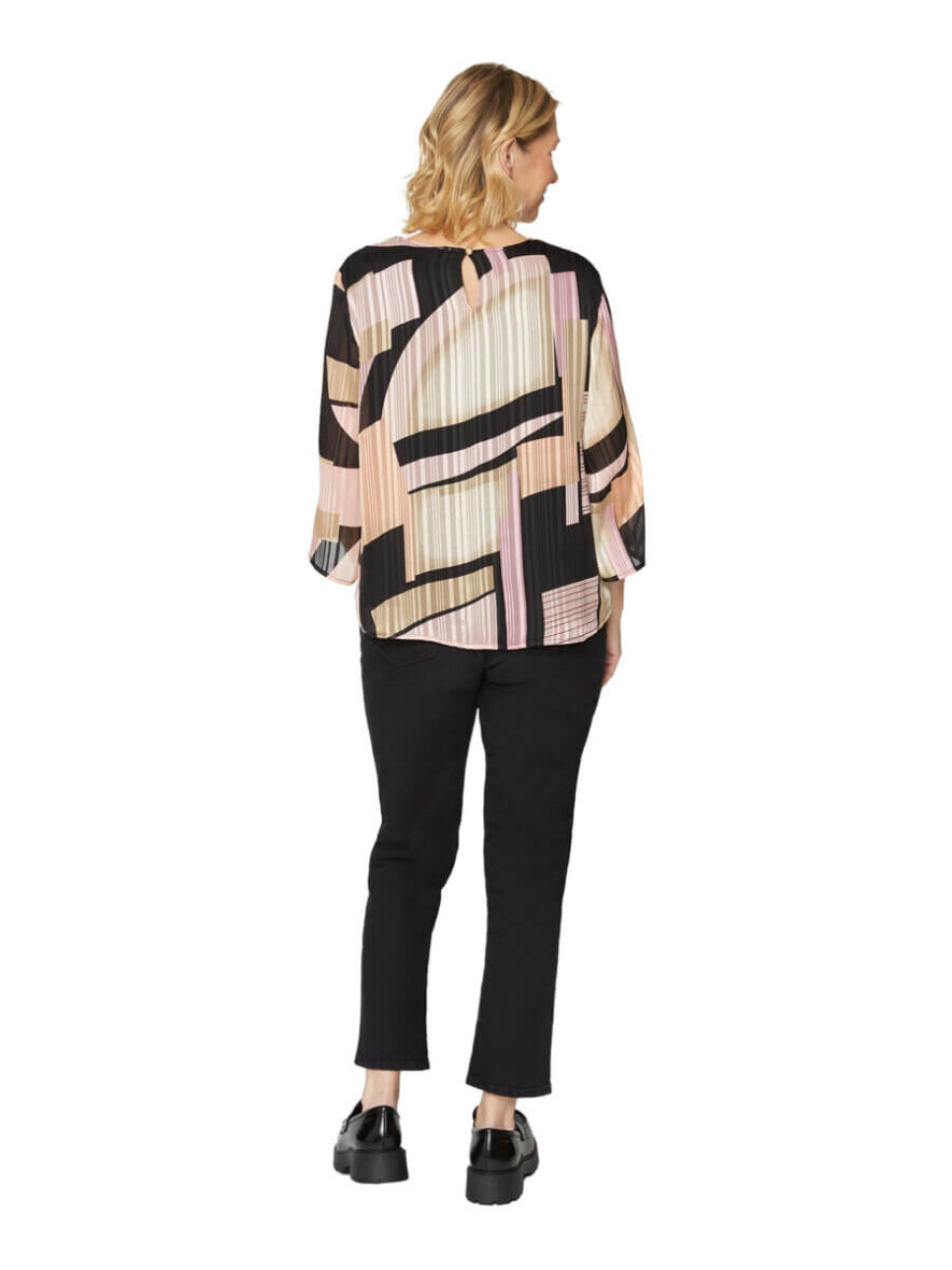Smuk bluse fra Brandtex. Blusen er lavet i et geometrisk mønster i den skønneste multi farvekombination.