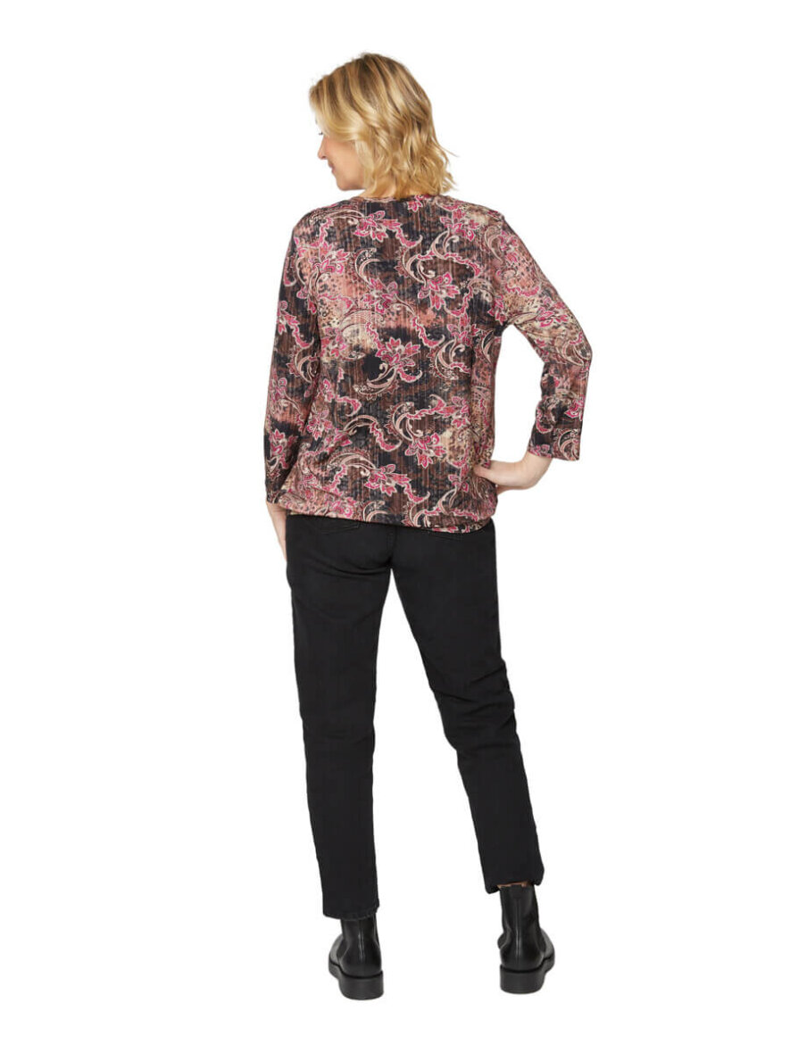 Flot og feminin bluse fra Brandtex. Blusen er lavet i et skønt blomstret print i pink nuancer.