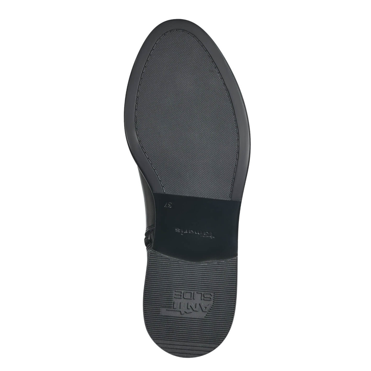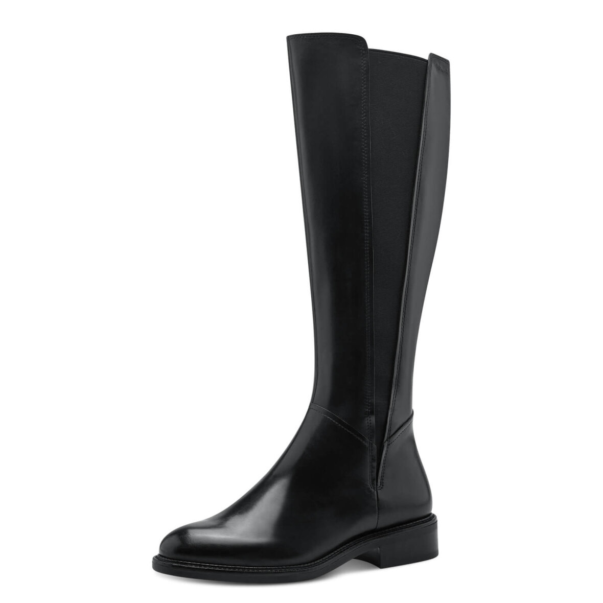 Flot lang støvle i sort skind fra Tamaris. Støvlen er med elastikpanel langs ydersiden, så støvlen sidder godt til. Støvlen er med indvendig lynlås så den er nem at få af og på.