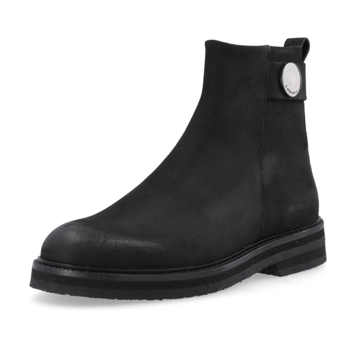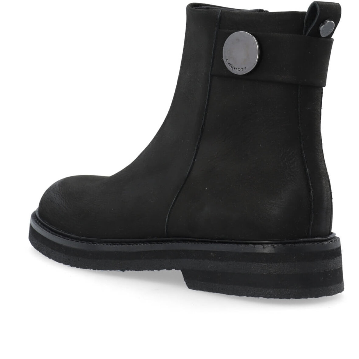 CASBETTY støvlen fra Ca'Shott er et par fede Chelsea støvler med den ikoniske Ca'shott knap på ydersiden. Støvlen er med en fin detalje med en bred rem bagpå. Støvlen er lavet i sortnubuck.