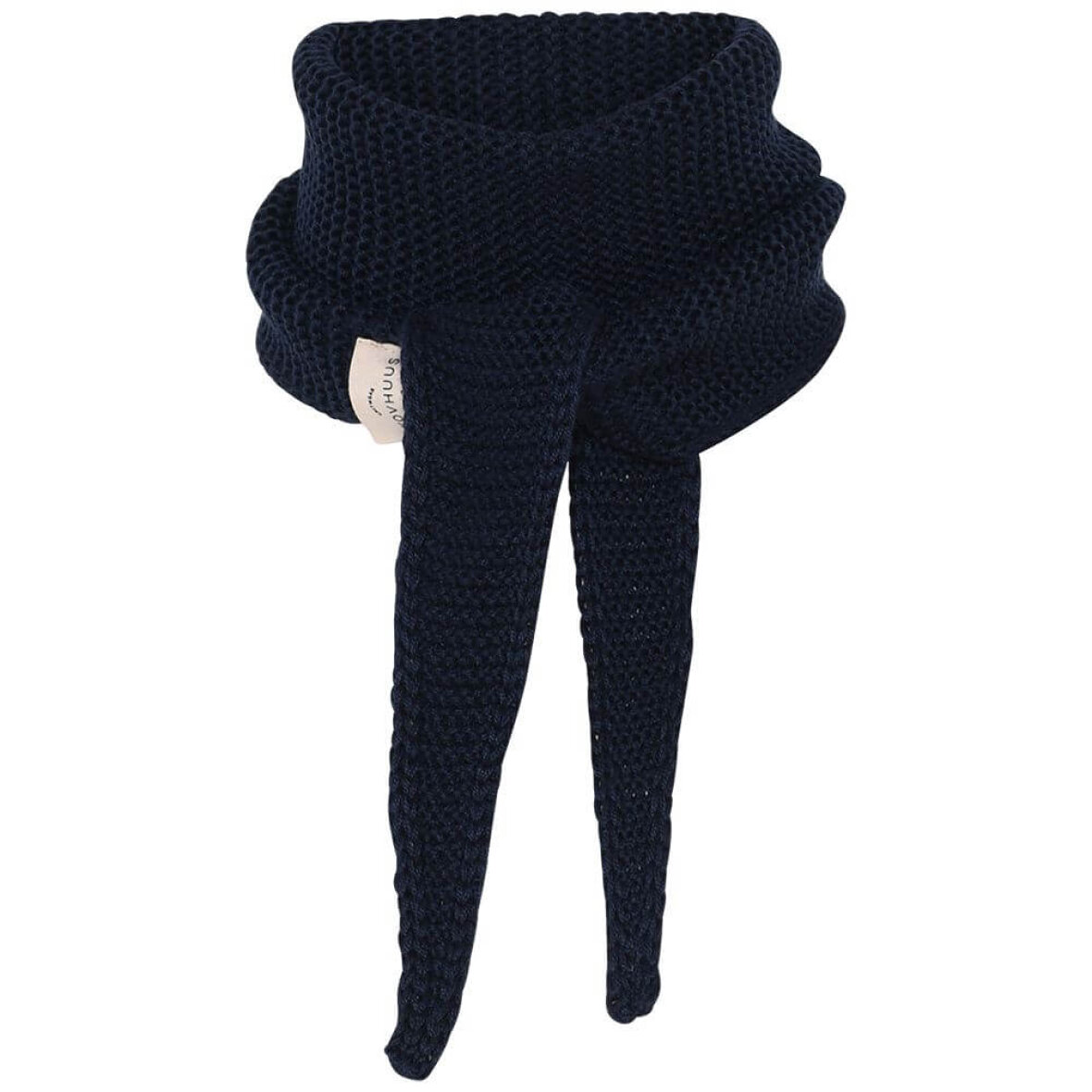 Lækkert halstørklæde i mørkeblå strik fra Skovhuus.