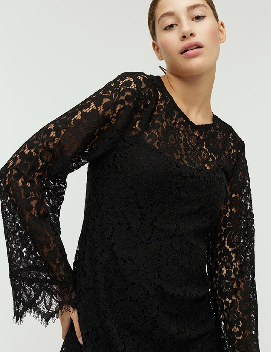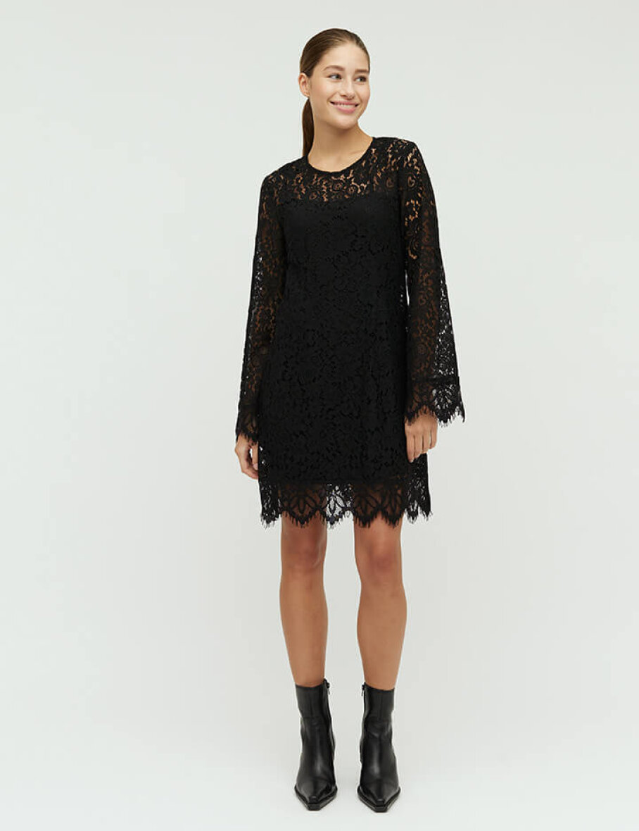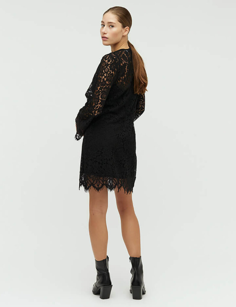 mbyM laver trendy modetøj i skandinavisk stil med et feminint touch. Konceptet hos dem er "seje detaljer", hvilket Edmonda kjolen er et godt eksempel på med sine fine blonde detaljer.