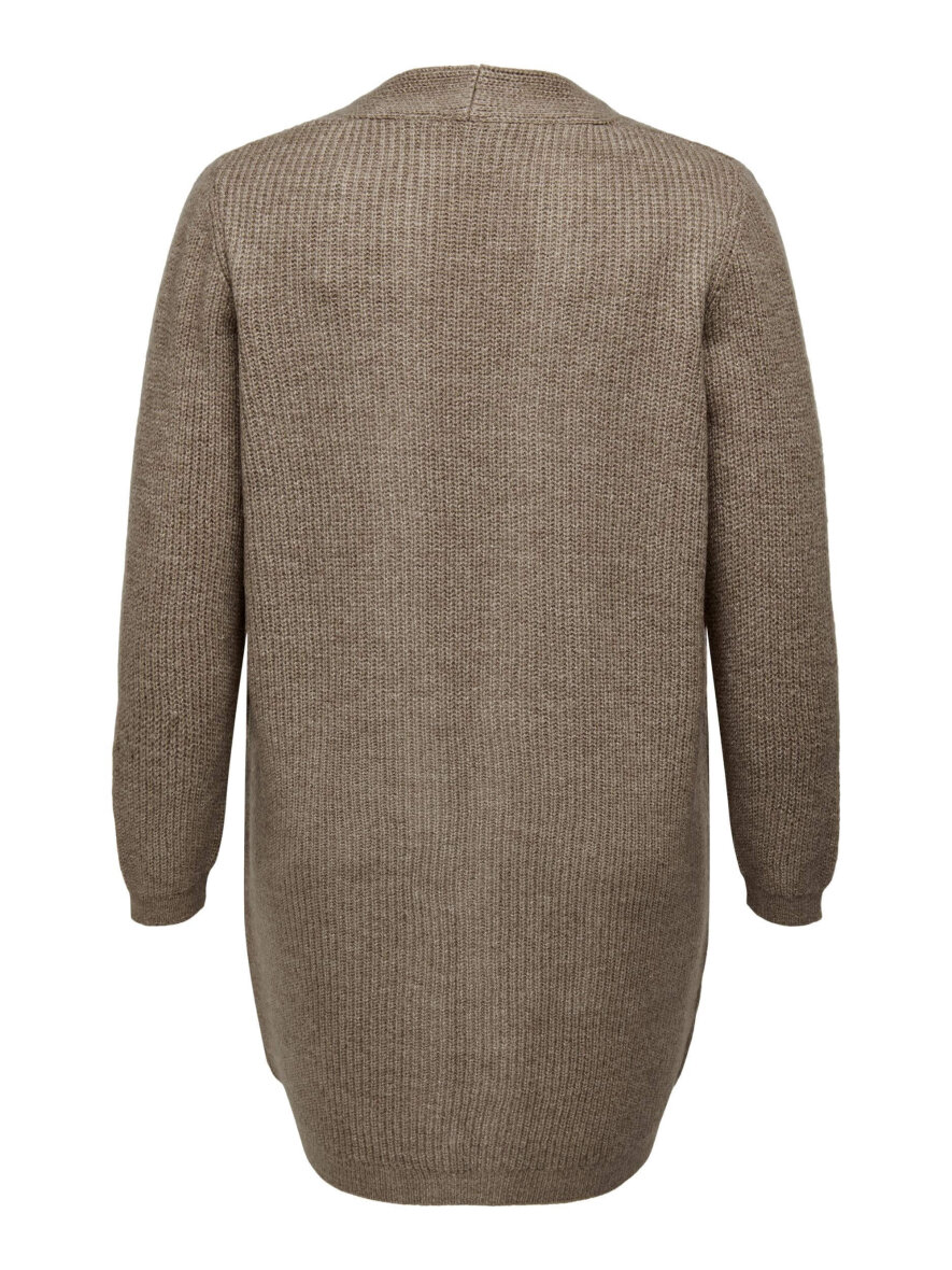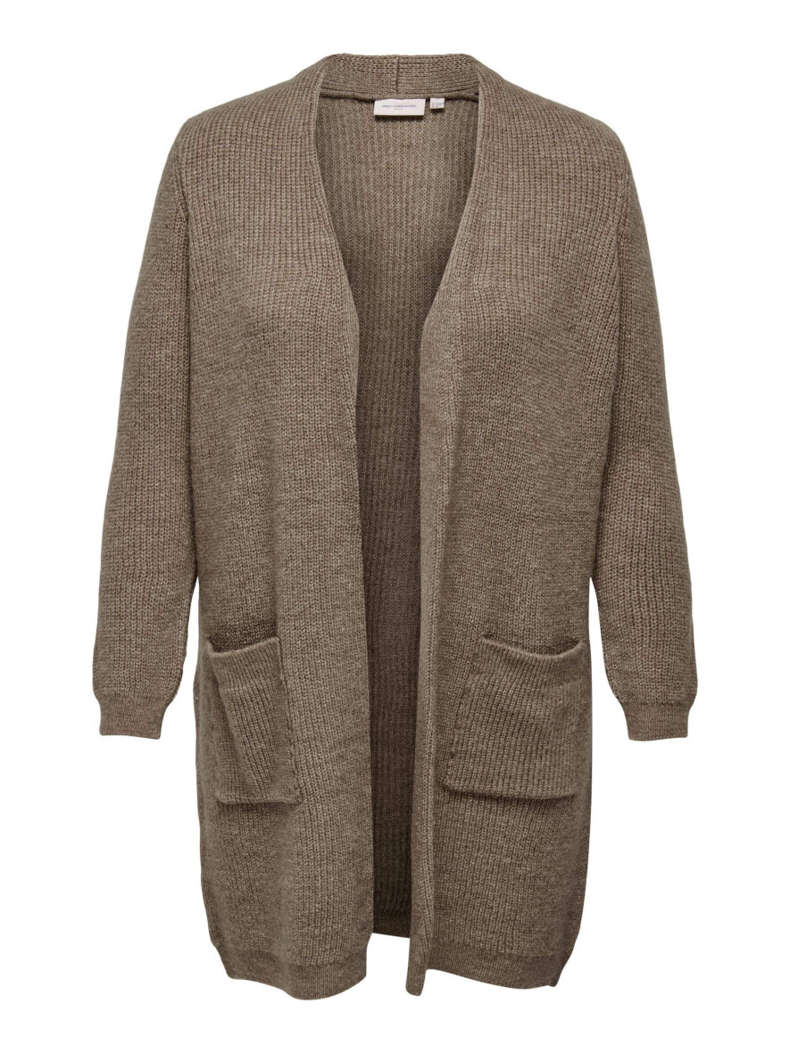 Dejlig blød strikcardigan i en skøn lysebrun farve fra ONLY Carmakoma. Åben cardigan med lange ærmer med ribkant og 2 åbne lommer foran. Den lange cardigan er perfekt til den kolde årstid.