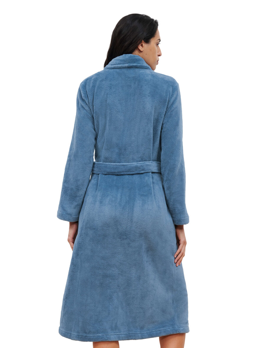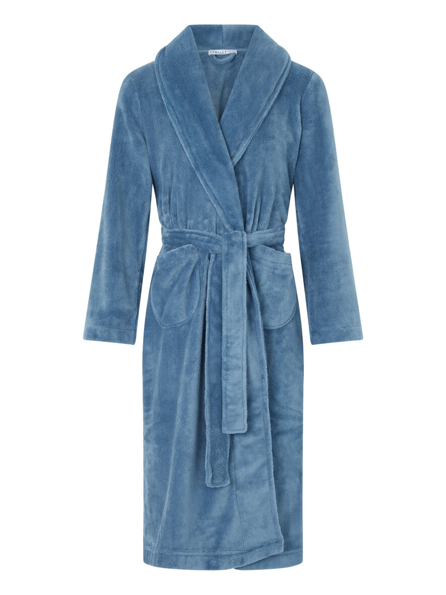 Flot blå morgenkåbe fra Femilet. Teddy morgenkåben er lavet i 100% blød polyester, som er yderst behagelig at have på.