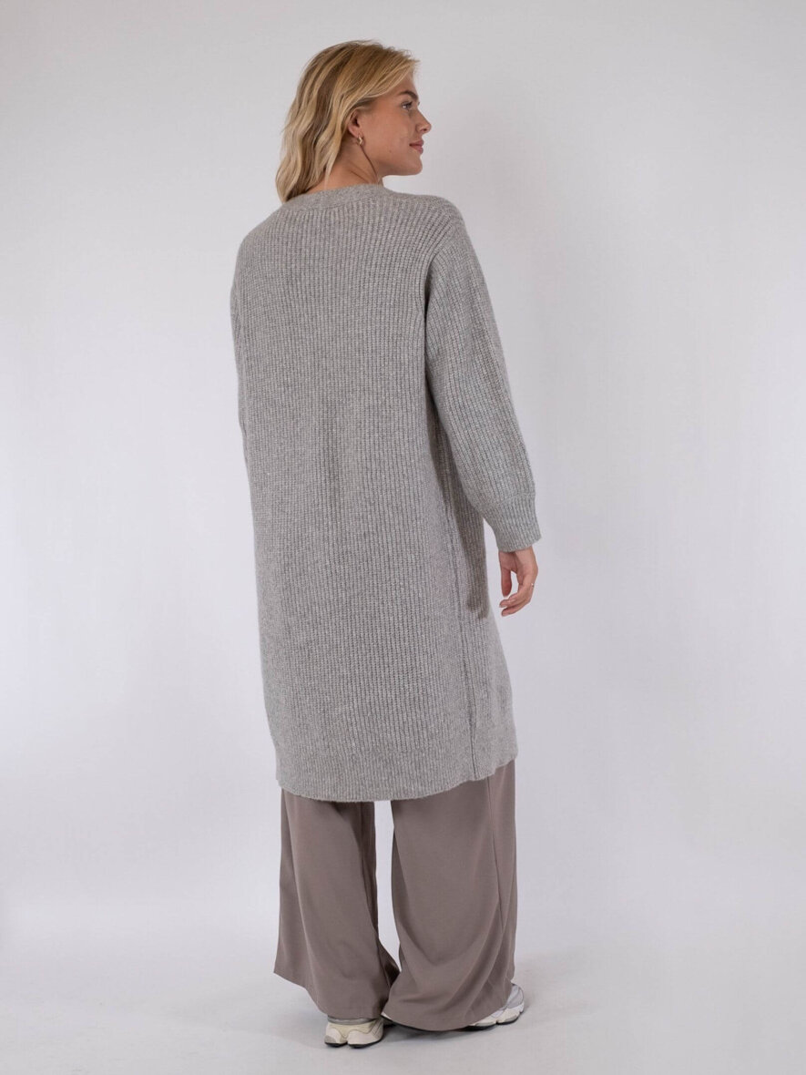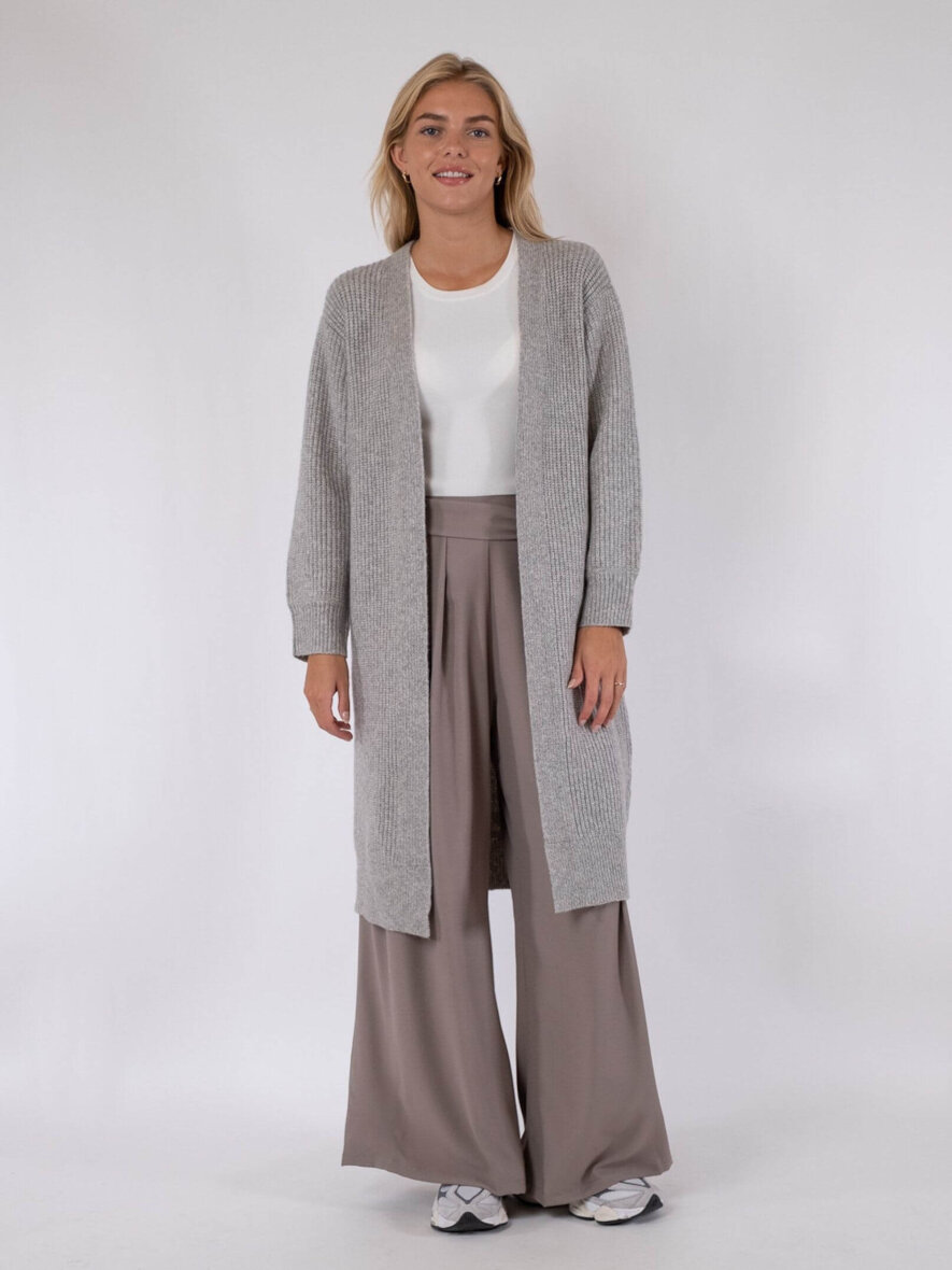 Lækker strikket cardigan fra Neo Noir. Den lange Giana cardigan er lavet i en blanding af materialer, som gør den dejlig blød og lækker. Pasformen er løs med vidde i ærmerne. Skøn åben cardigan med lange ærmer som kan styles udover ethvert hverdags outfit.