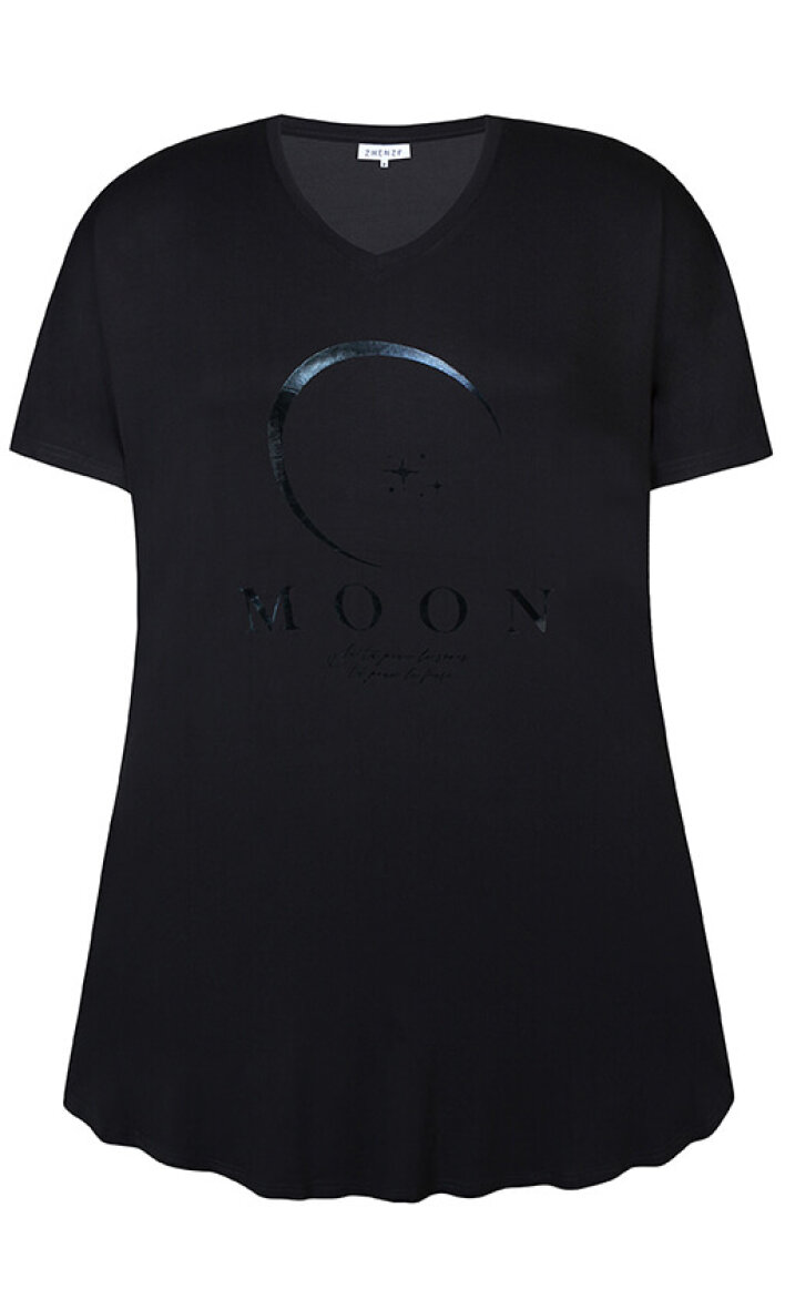 Flot sort natkjole fra Zhenzi. Natkjolen er med et sødt design med tryk af en måne og stjerne med orderne "moon" foran.