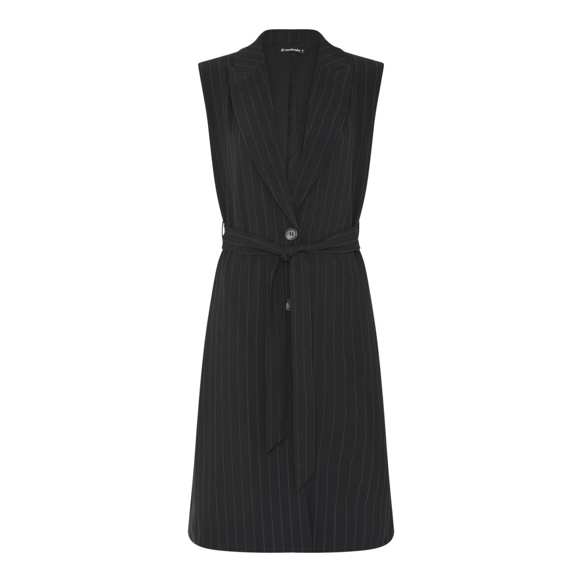 Stilfuld lang vest fra Soulmate. Den sorte vest er lavet i et stribet design, hvilket giver et flot og enkelt udtryk.