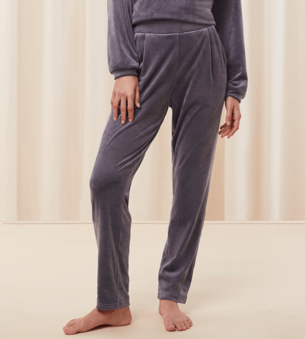 Lækkert blødt hjemme sæt fra Triumph. Sættet er lavet en en lækker velour kvalitet, hvilket gør den yderst behagelig at have på.