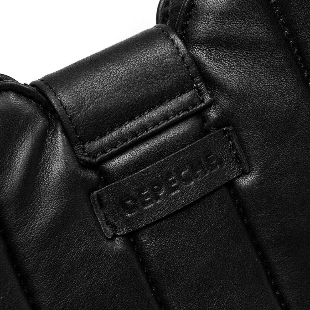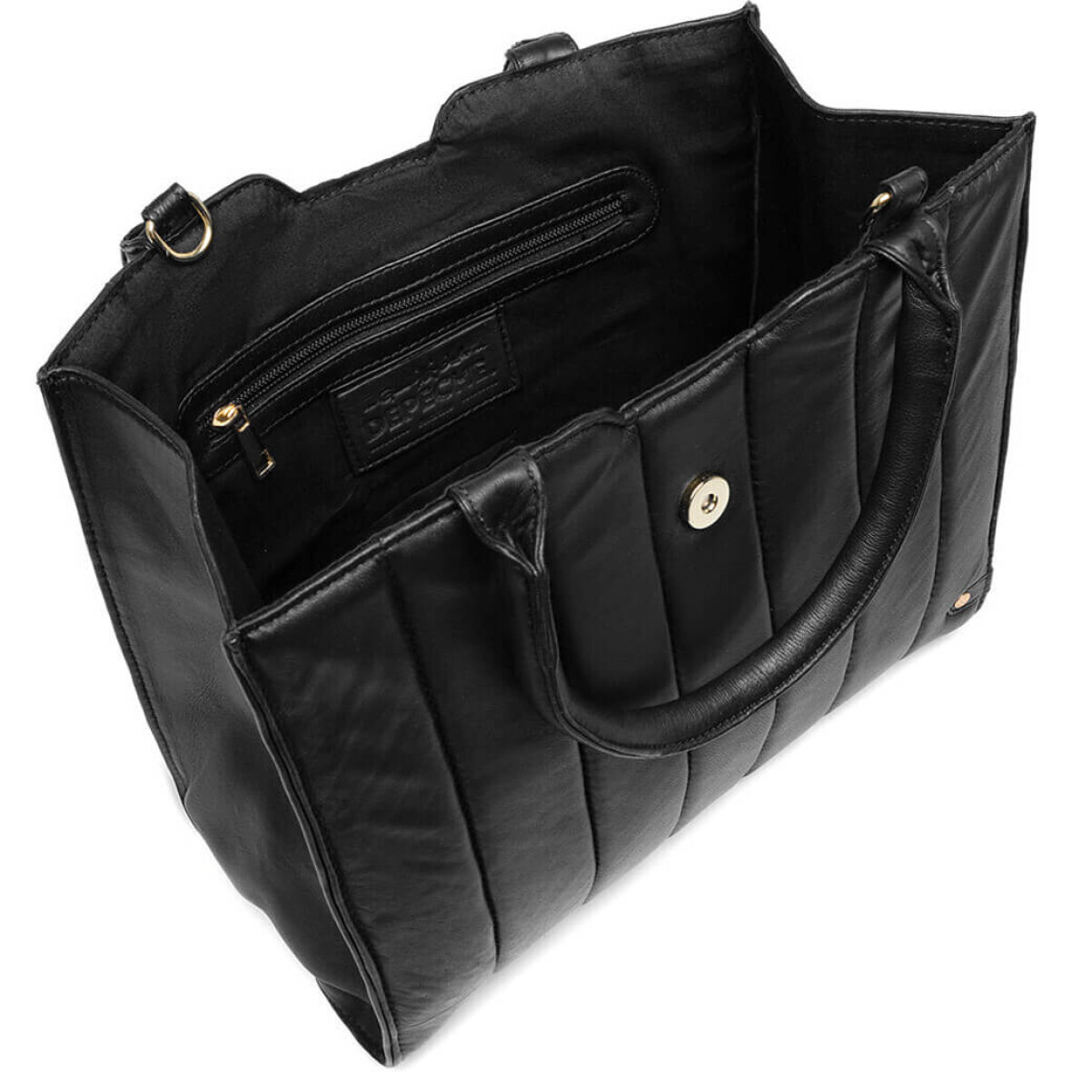 Smuk sort taske fra Depeche. Tasken er lavet i en dejlig blød 100% skindkvalitet. Tasken er dekoreret med all-over polstring, hvilket giver et trendy og ungt look. Tasken er med en smuk spændeluk med trykknap foran.