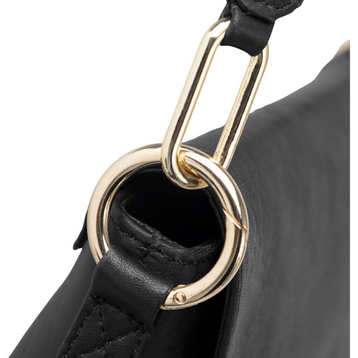 Som en fed detalje er taskens skulderrem med en fed kæde detalje, hvilket giver et mere råt look og udtryk.