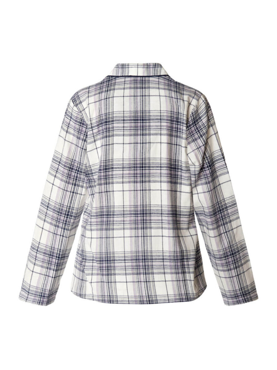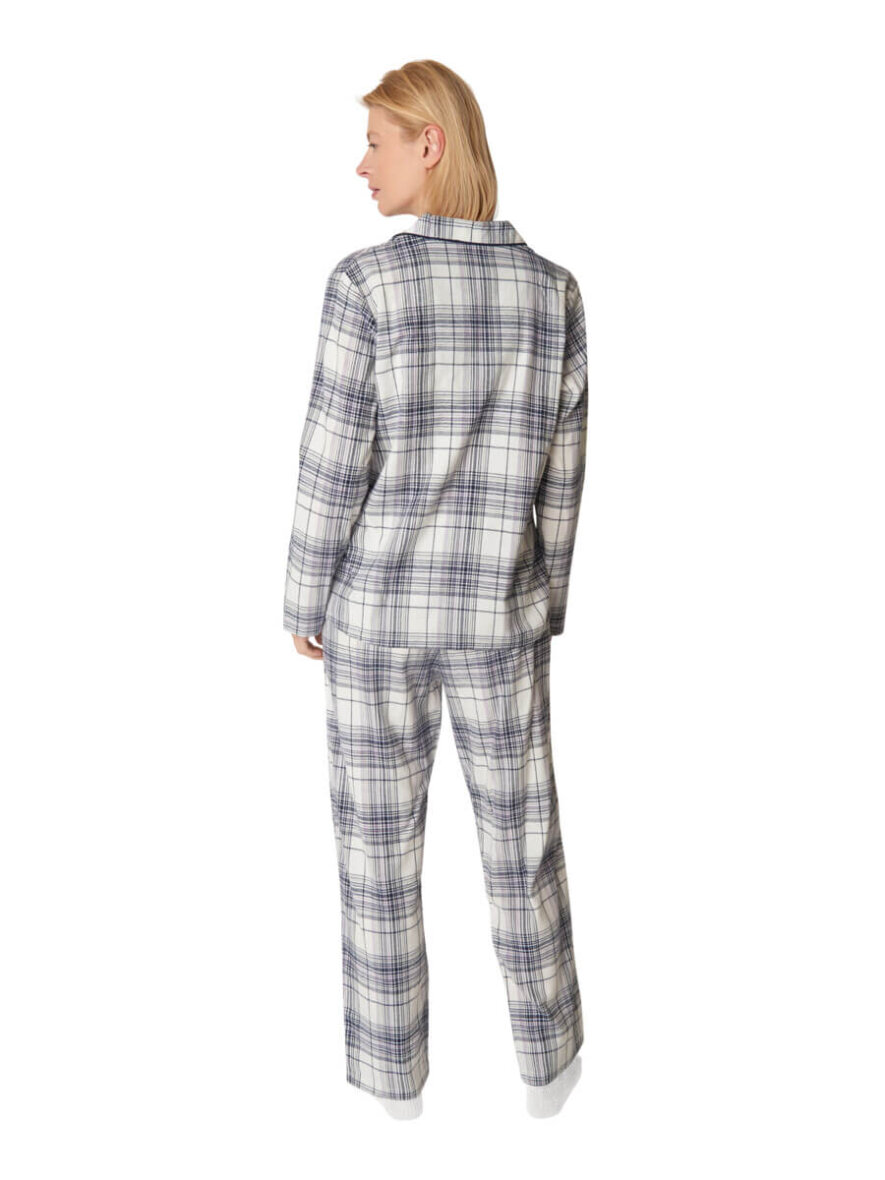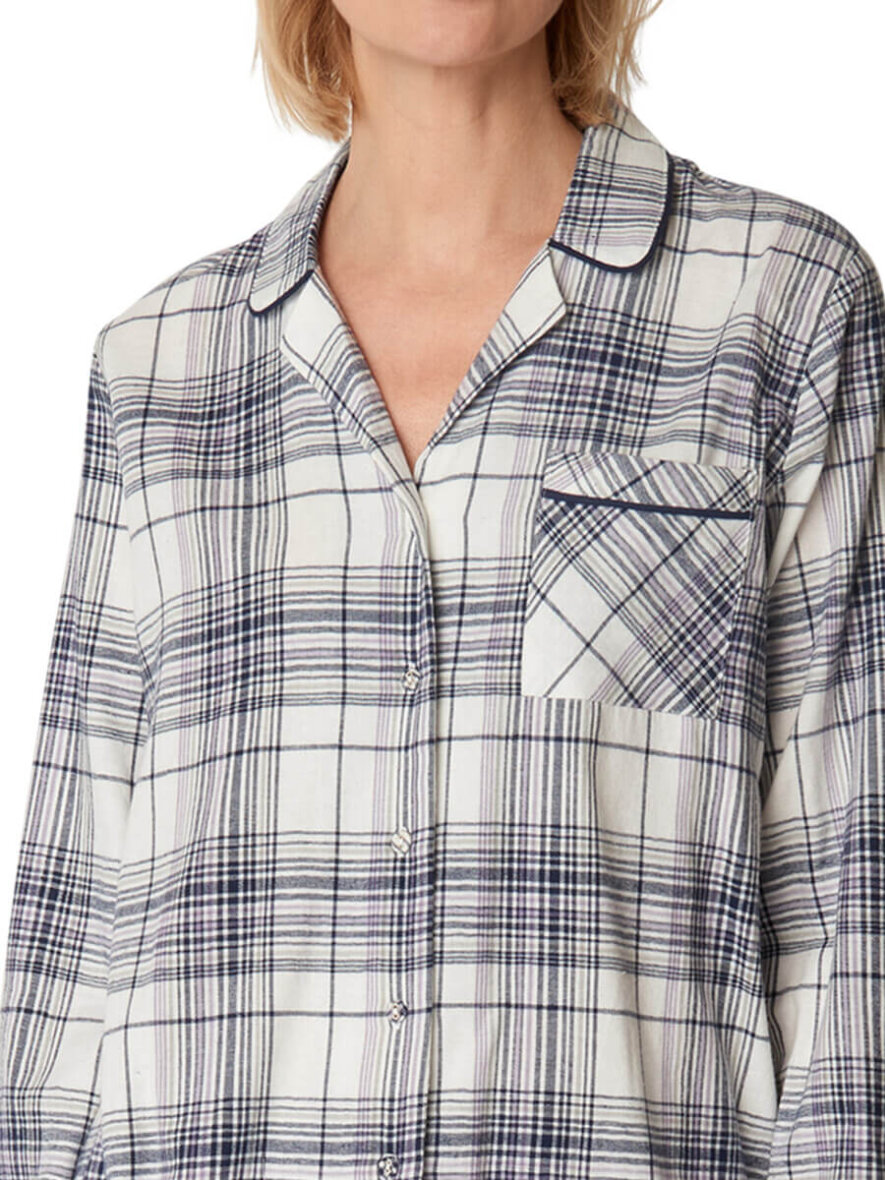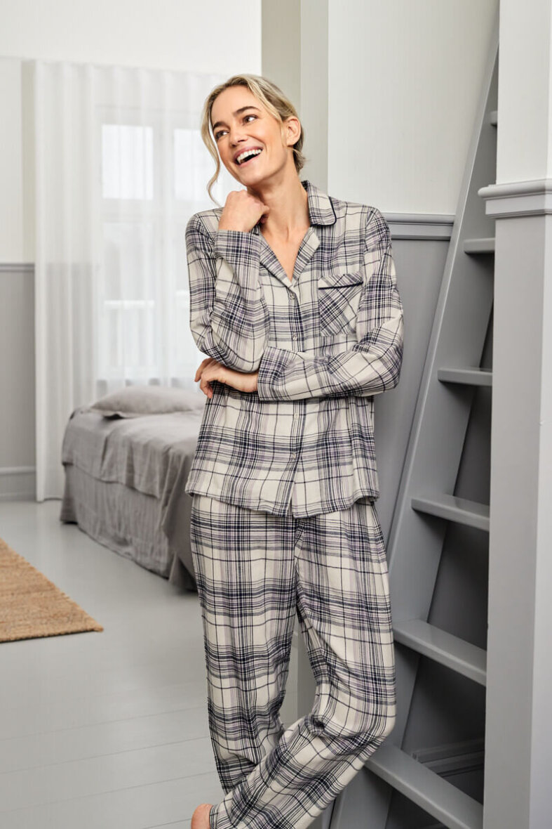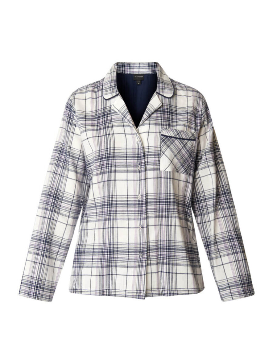 Flot pyjamas sæt fra Brandtex. Sættet består af en nattrøje og natbukser i et flot ternet design. Nattrøjen er en flot ternet skjorte med krave og gennemgående knapluk foran. Trøjen er med en lille brystlomme og lange ærmer.