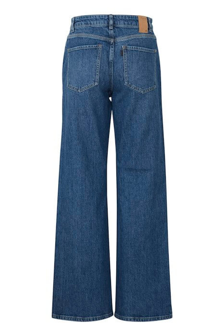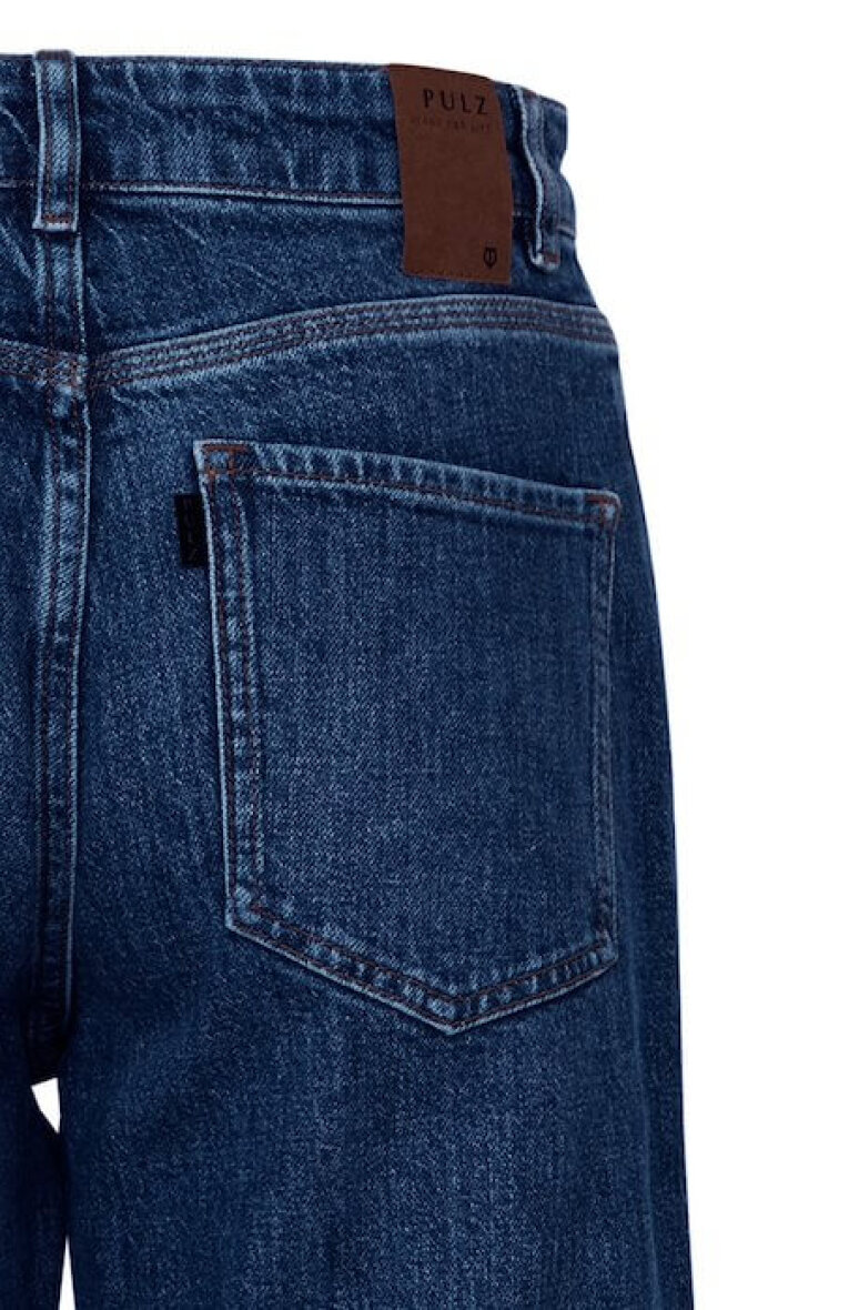 Klassiske blå denim jeans fra Pulz Jeans. Vega modellen er en højtaljet buks med brede ben. Buksen er lavet i et klassisk jeans design med knapluk og lynlås, bæltestropper samt 5-lommer.