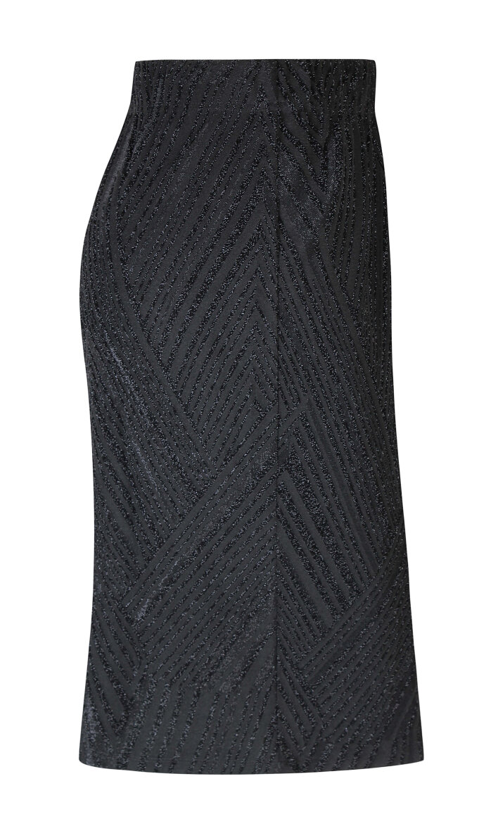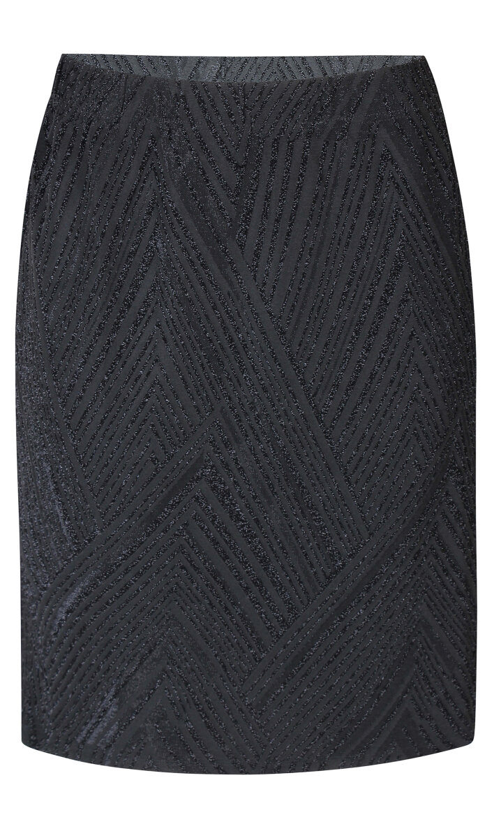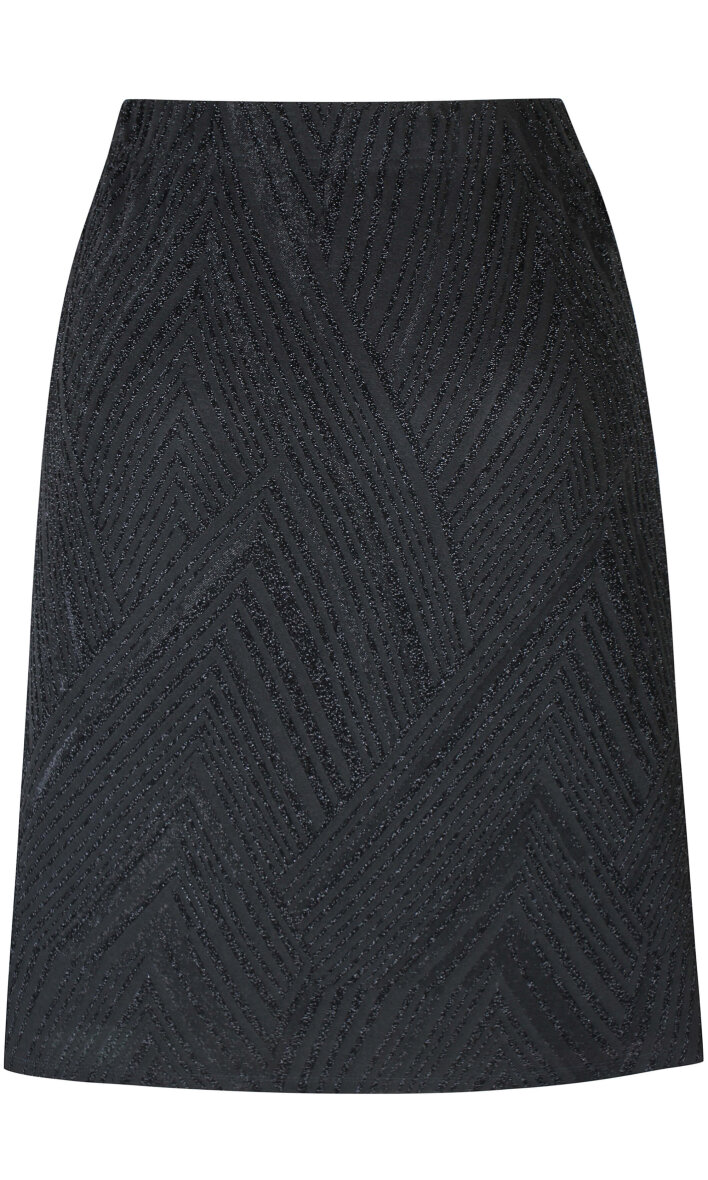 Flot sort nederdel i det fineste glimmer mønster fra Zhenzi. Nederdelen er med elastik i taljen, så den sidder flot til i taljen. Nederdelen er lavet i en klassisk A-form, hvilket sidder flatterende på de fleste kropstyper.