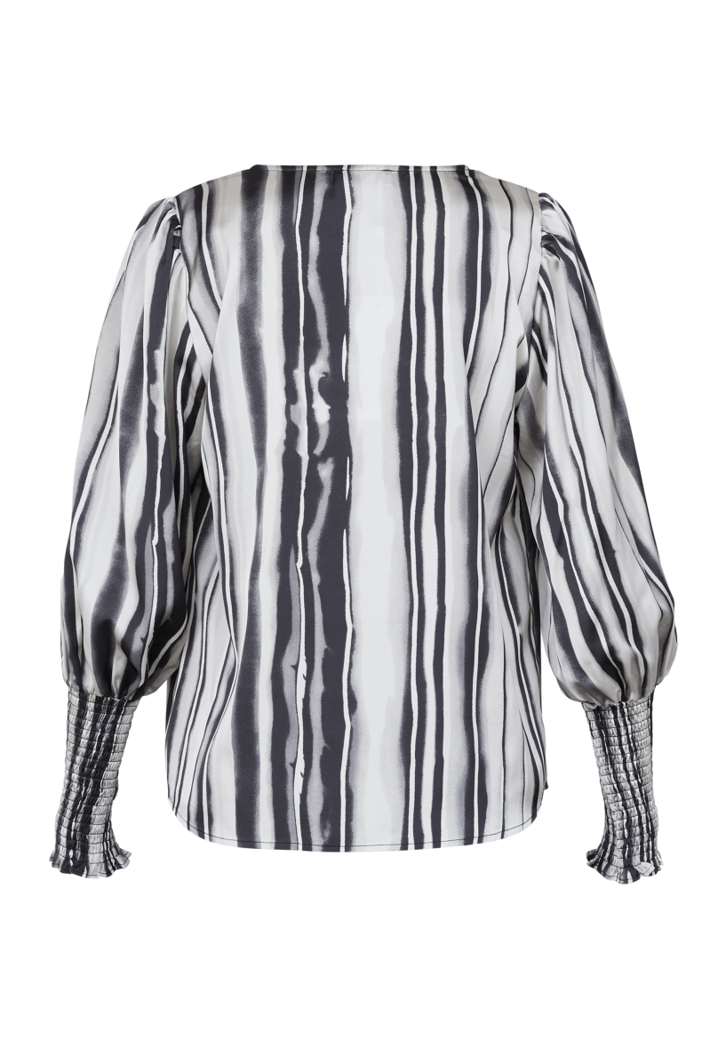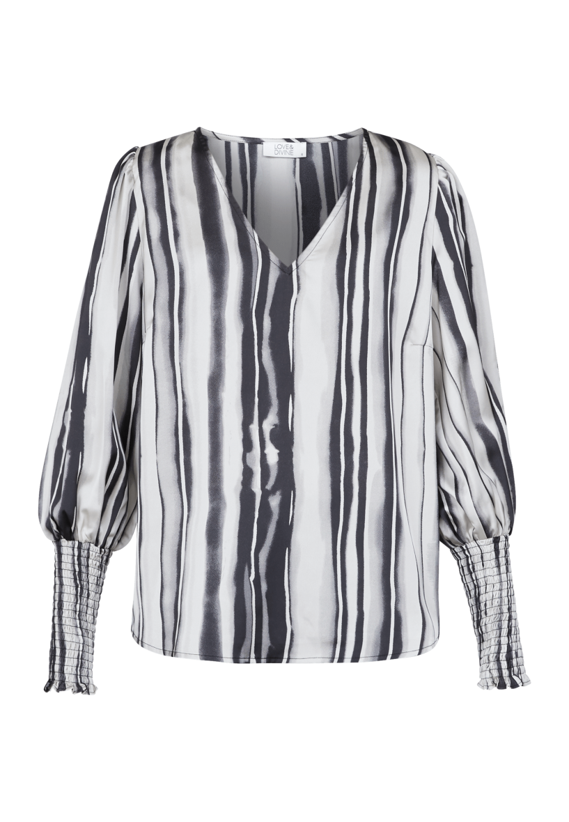 Smuk bluse fra Love & Divine. Blusen er lavet i et flot stribet design i grå og sorte farver.