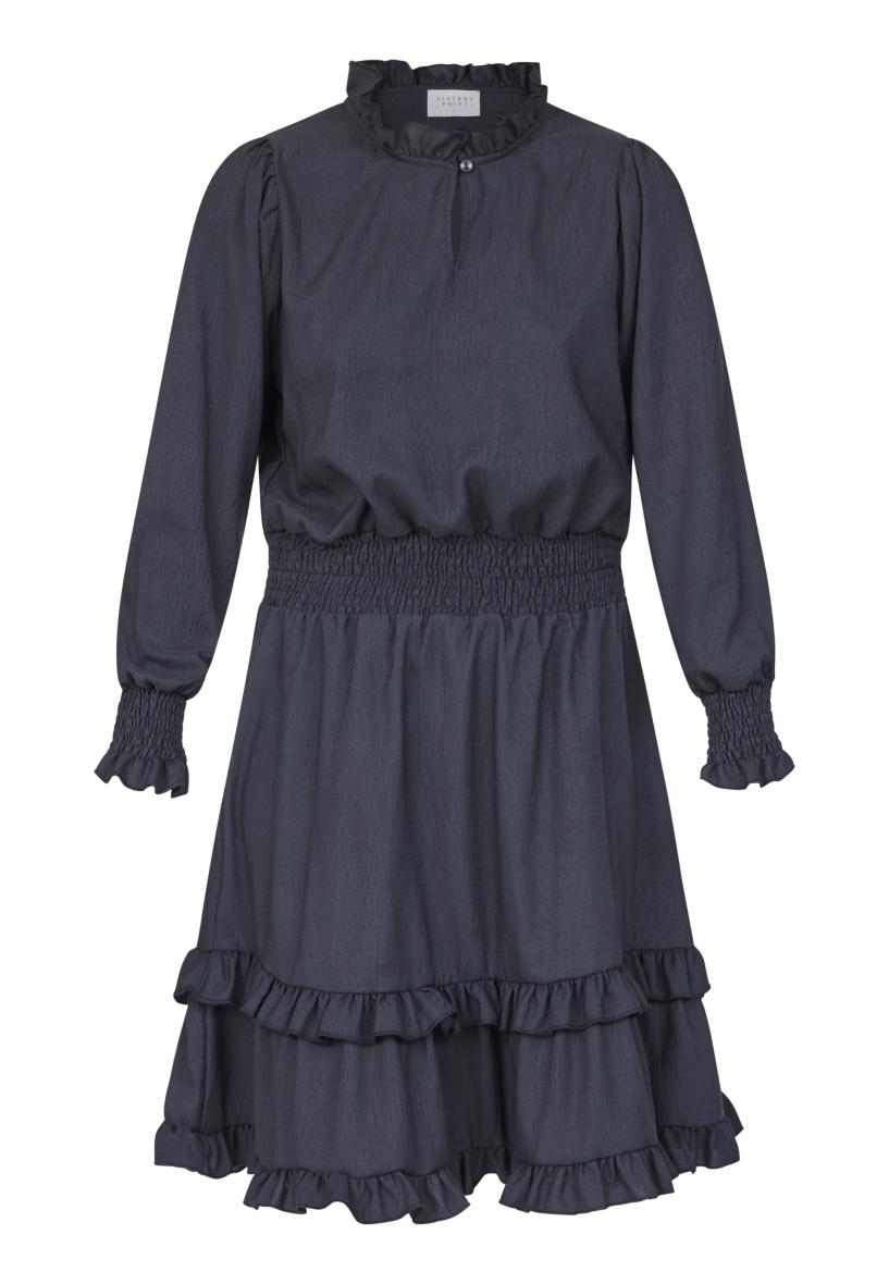 Flot og feminin sort kjole fra Sisters Point. Kjolen er med rund hals med knapluk og nøglehuls detalje foran. Ved halsåbningen er kjolen er en fin flæse detalje.