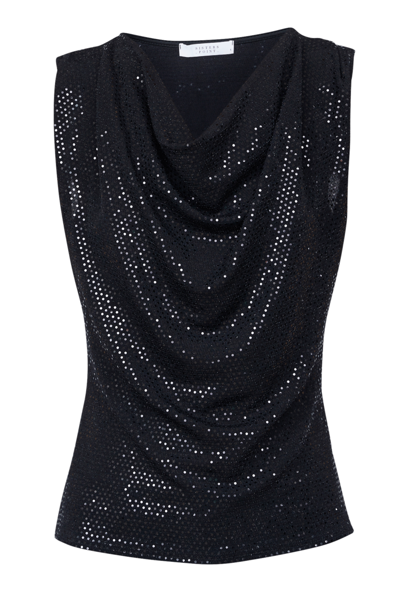 Flot og festlig top med pailletter fra Sisters Point. Festtoppen med tætsiddende pasform er med vandfaldseffekt ved den dybe halsudskæring.