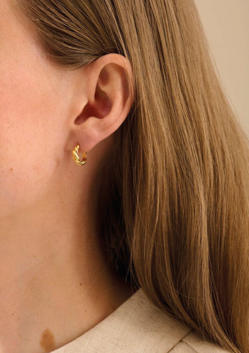 Small Hana øreringe er lavet i et smuk og snoet design. Kollektionen imiterer naturens organiske linjer og skaber et elegant udtryk. Et stilrent og tidsløst design.