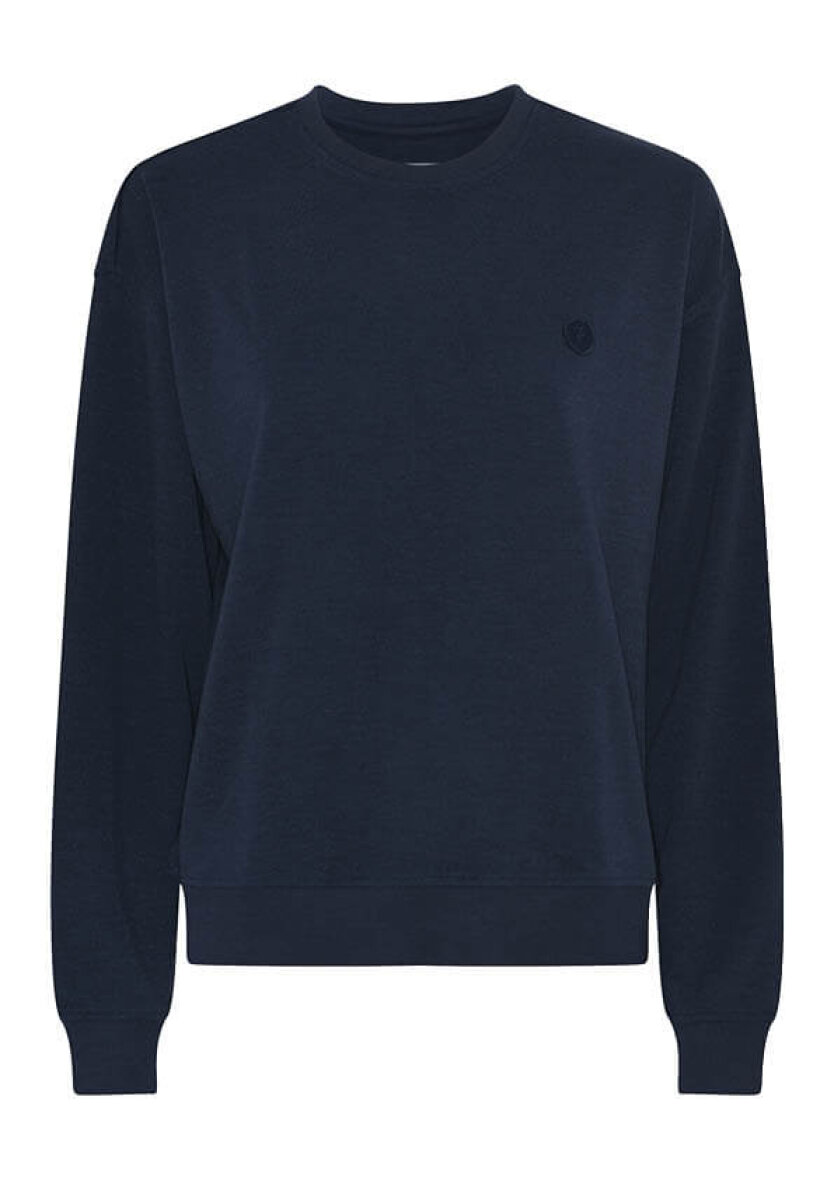 Sweatshirten er med rund hals, lange ærmer og ribkant ved alle åbninger. Trøjen er med et lille påsyet logo på fronten.
