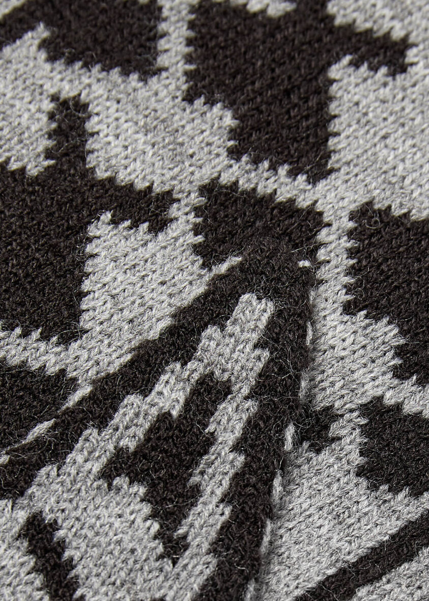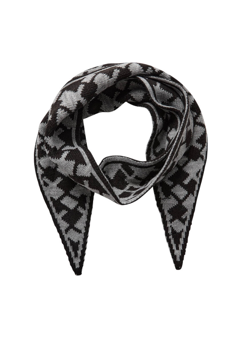 Flot tørklæde i et smart design fra Soyaconcept. Halstørklædet er lavet i et trekantet design med et grafisk strikket mønster i sort/grå farver.