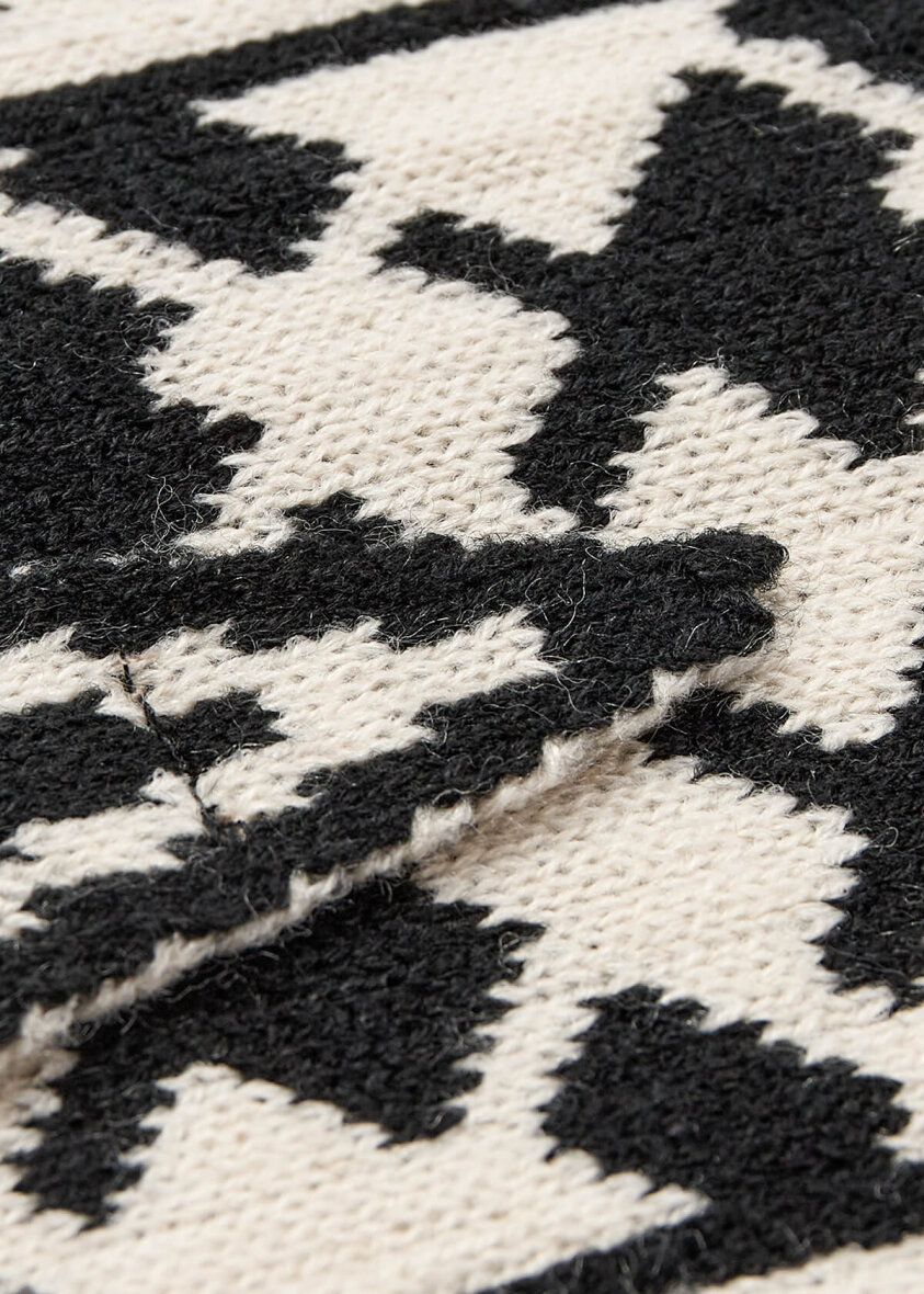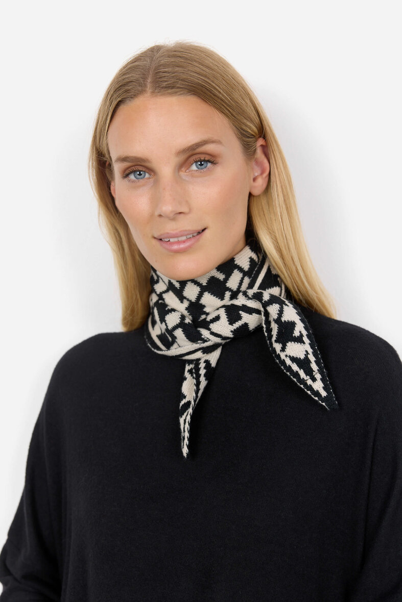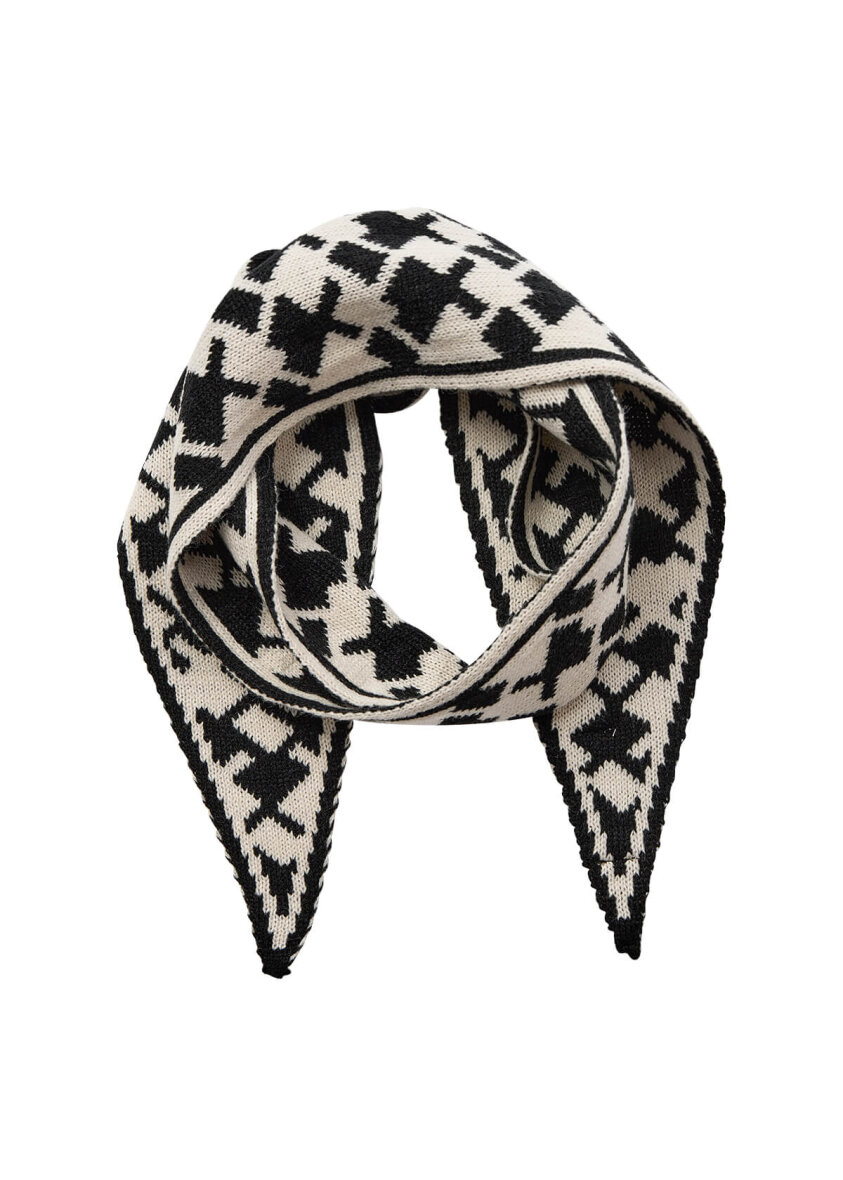 Flot tørklæde i et smart design fra Soyaconcept. Halstørklædet er lavet i et trekantet design med et grafisk strikket mønster i sort/hvid farver.