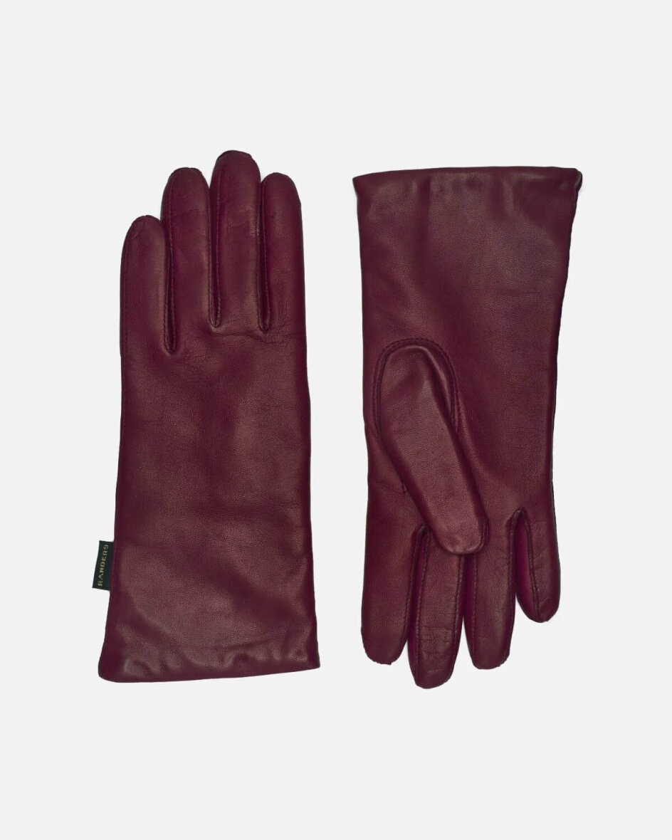 Randers Handsker i en klassisk model med tidsløse design og vandafvisende effekt. Handsken består af bordeaux farvet lammeskind kombineret med et varmt uldfor, der er forstærket med et lille strejf af nylon for ekstra styrke og lang levetid. Hver handske er skåret i hånden efter en flere hundrede år gammel tradition, håndlavet efter klassisk handskemageri og syet med full piqué (stiksyet), hvilket sikrer en perfekt pasform og en eksklusiv finish.
