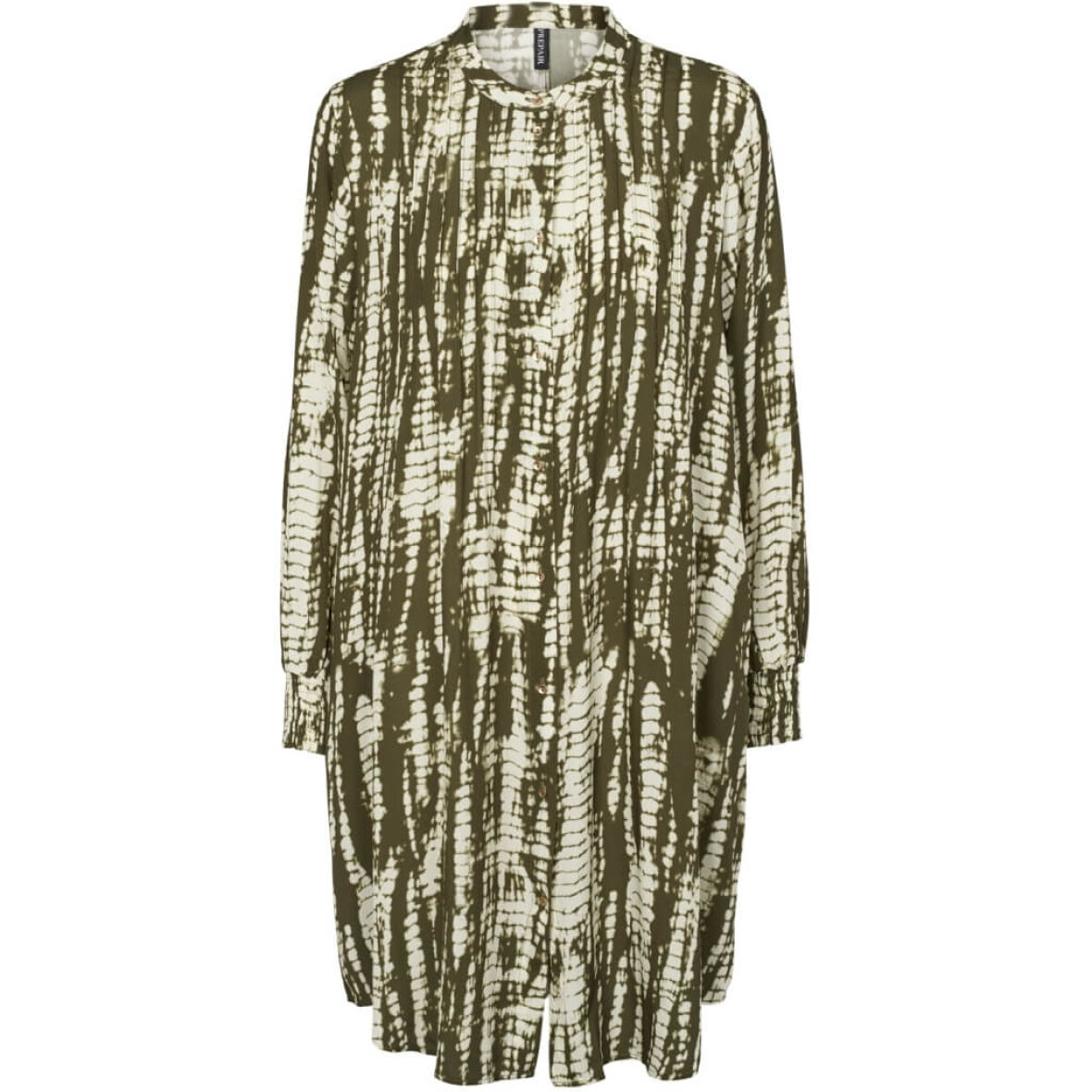 Flot mellemlang kjole i et skønt tie dye print fra Prepair. Carrie kjolen er lavet i flotte grønlige nuancer, som nemt kan styles til sæsonens rolige natur farver.