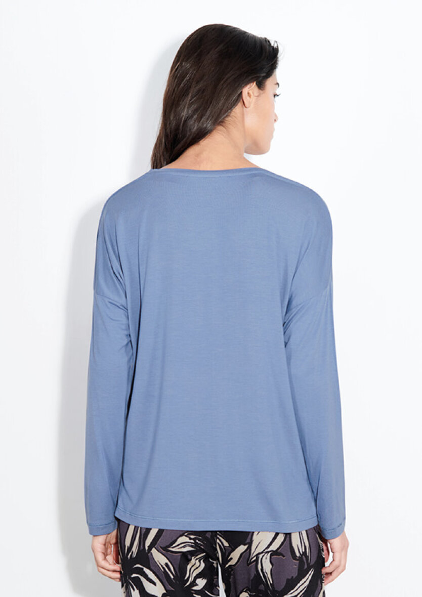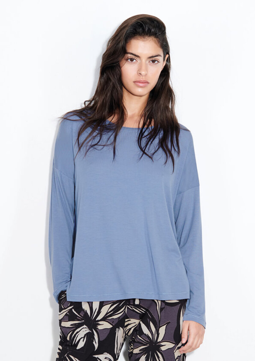 Sættet består af en natbluse og buks. Blusen er en enkel blå natbluse med rund hals og lange ærmer. Blusen er med en lille slids i siderne.