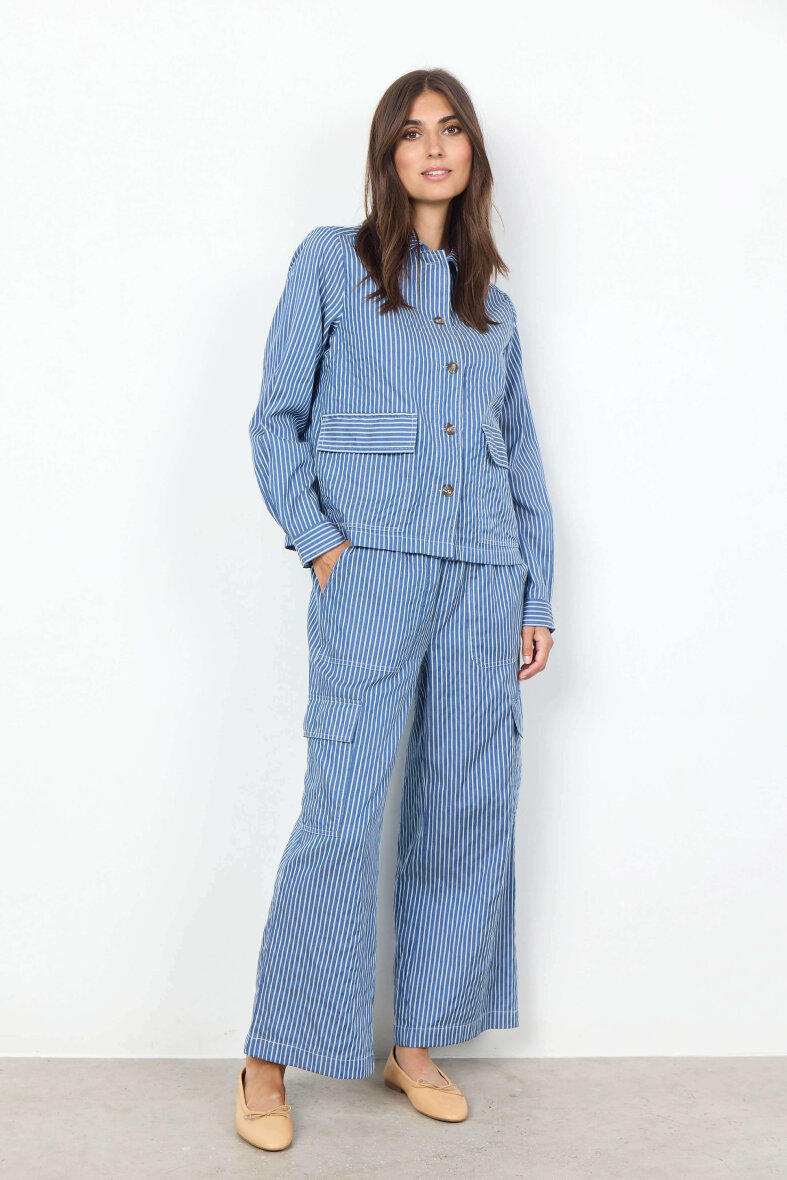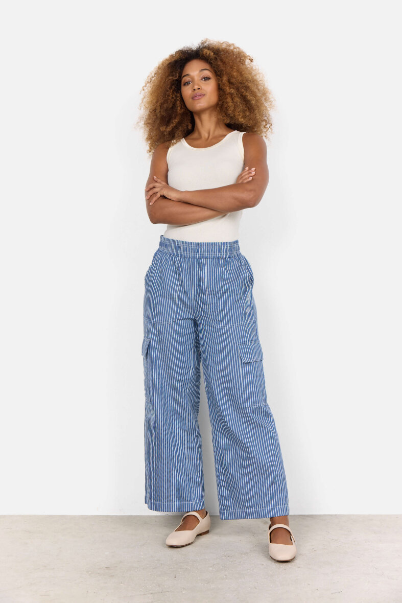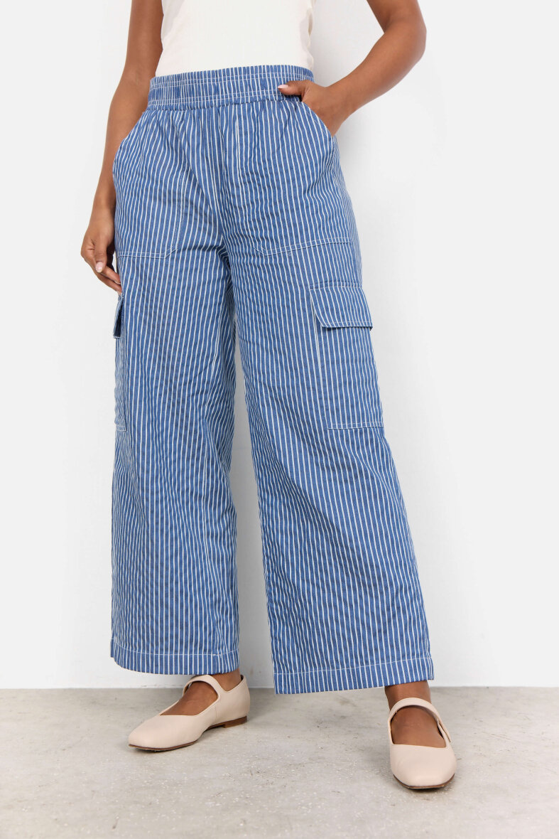 Komfortable bukser Soyaconcept. Buksen er lavet i et moderne stribet design i blå/hvid striber.