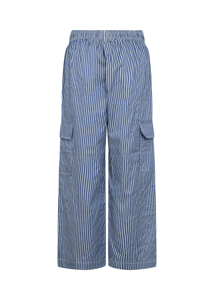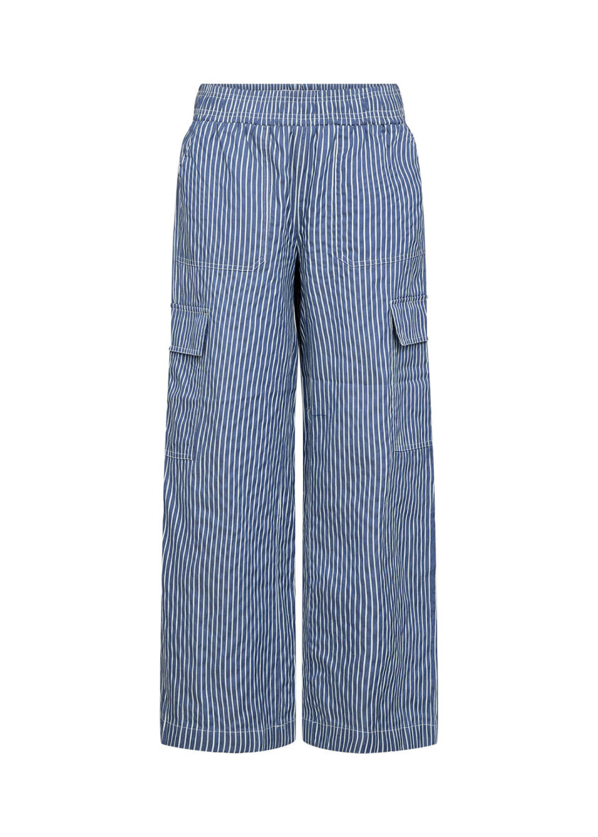 Buksen er med elastik i taljen, så de sidder godt til. Buksebenet er brede. Buksen er med åbne skrålommer og lommer i siderne med flap, hvilket giver et smart cargo udtryk.