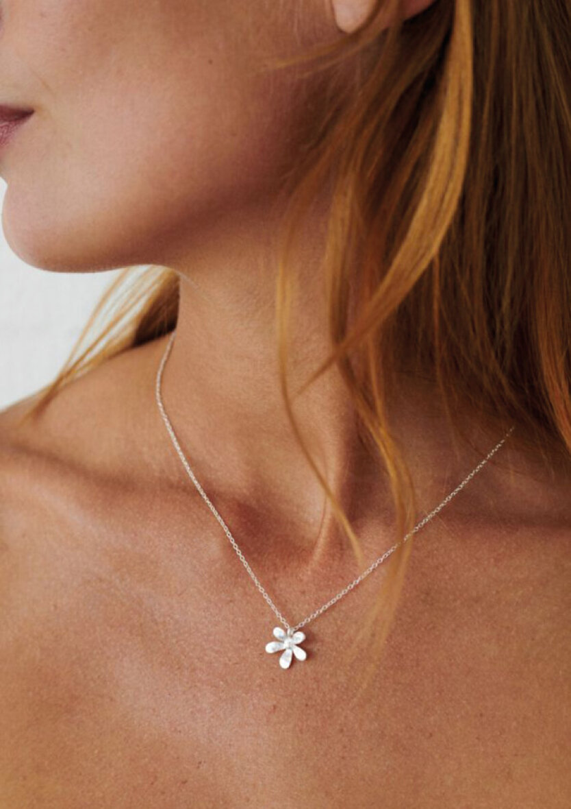 Wild Poppy halskæden er udsmykket med et smukt vedhæng af en valmue blomst. Vedhænget er lavet i en smuk silkebørstet overflade med form som valmuer.