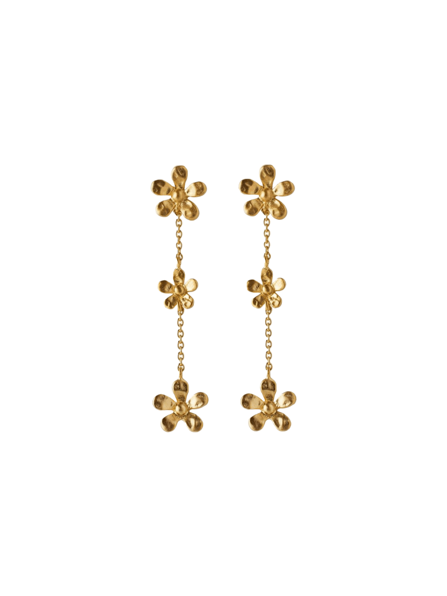 Wild Poppy øreringene er et sæt smukke øreringe med vedhæng i et fint og tidsløst design. Lavet i en smuk silkebørstet overflade med form som valmuer.
