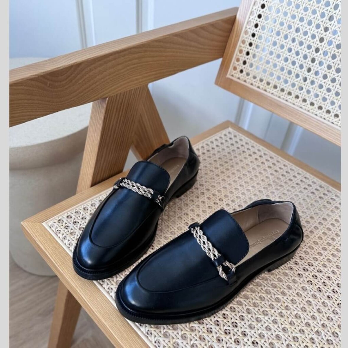 Loaferen er med en flot dekorativ guldkæde i guld metal over forfoden, hvilket giver et fedt look.