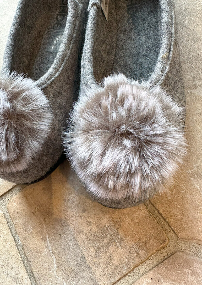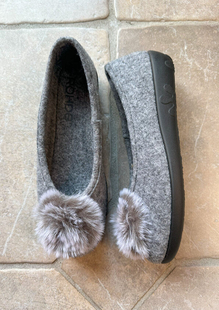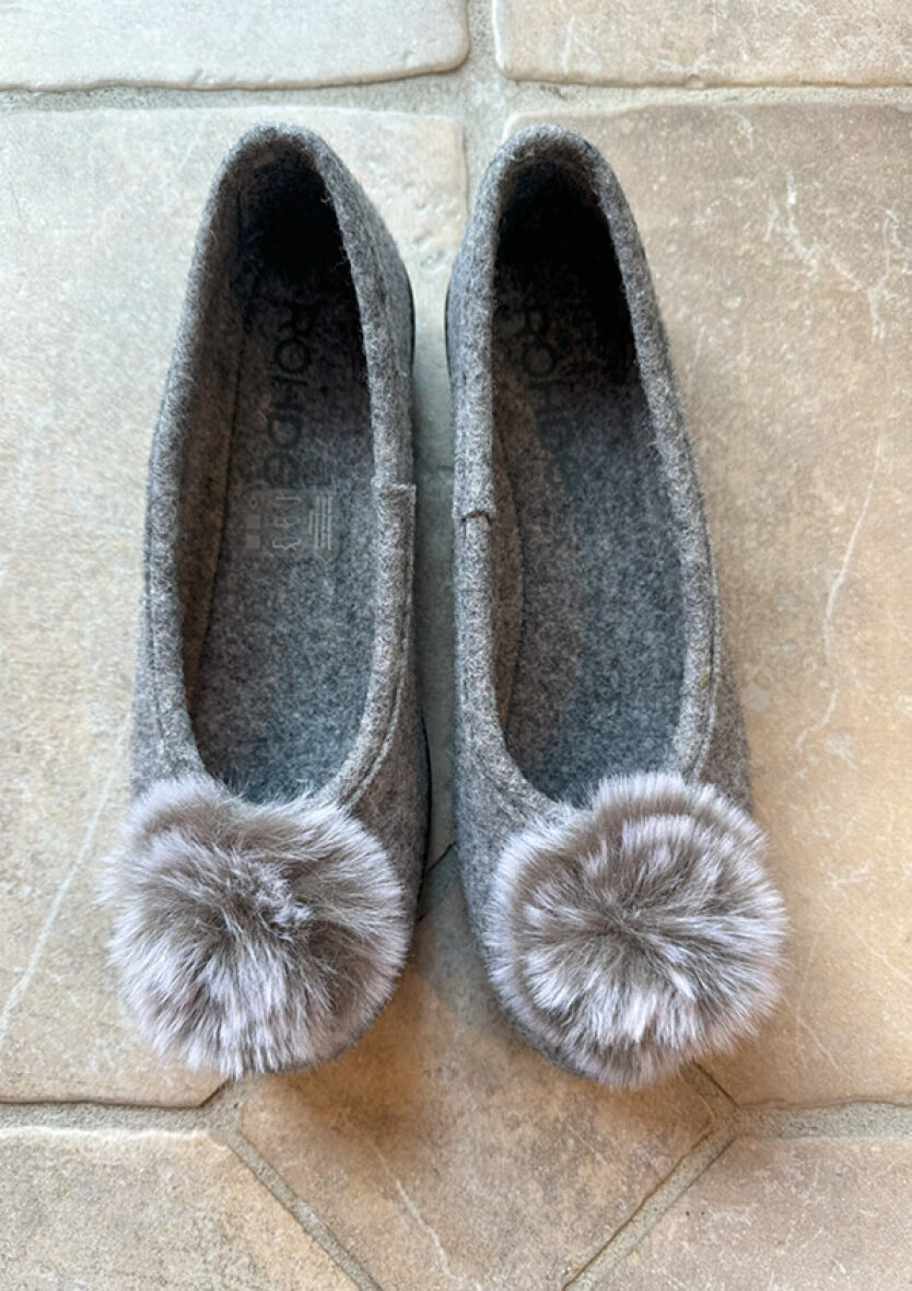 Sød dame hjemmesko fra Rohde. Den grå hjemmesko er med dekorativ plys på snuden.