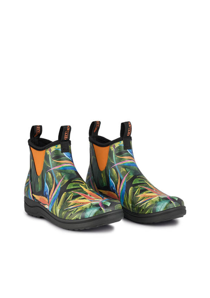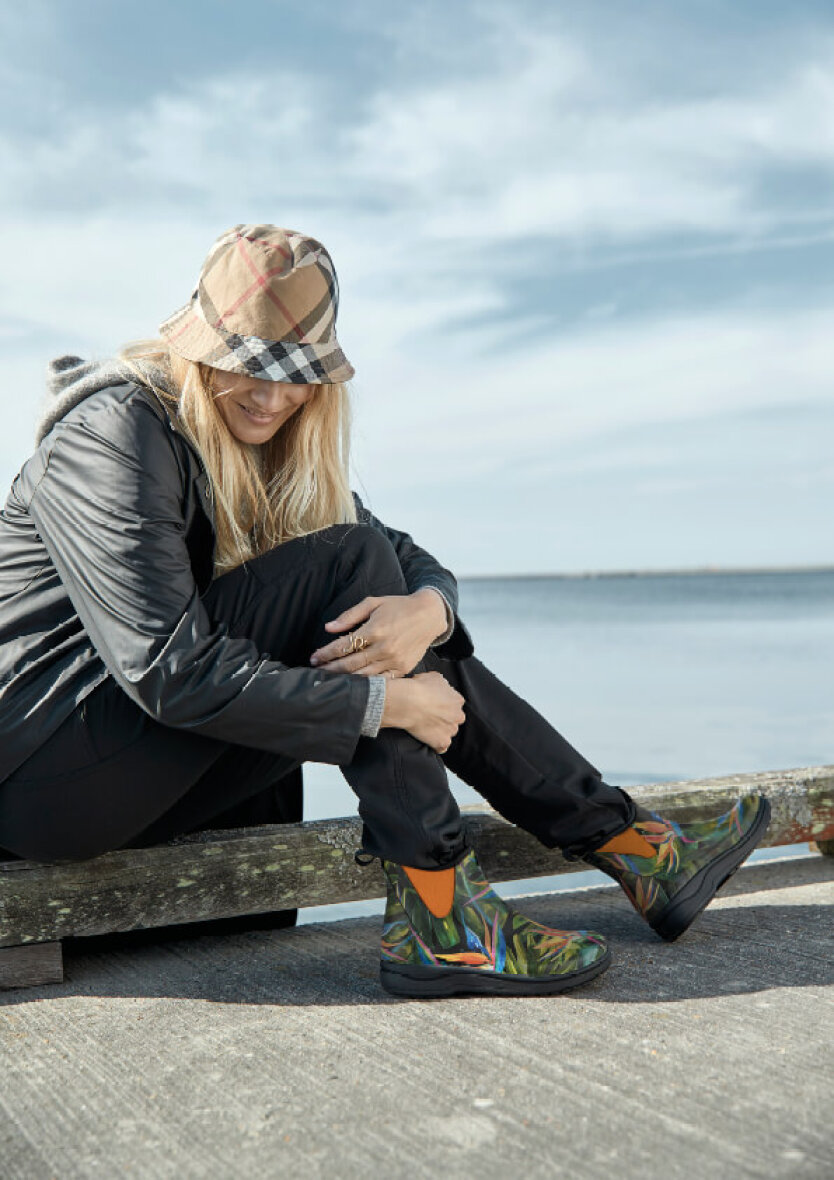 Smart kort gummistøvle fra Green Comfort. Gummistøvlen er lavet i en frisk multi farve med blomstret design.